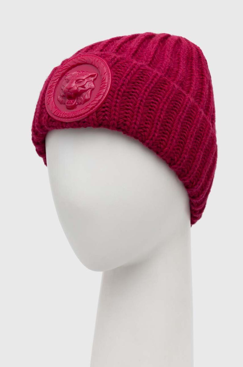 Шапка з домішкою вовни Just Cavalli колір рожевий з товстого трикотажу