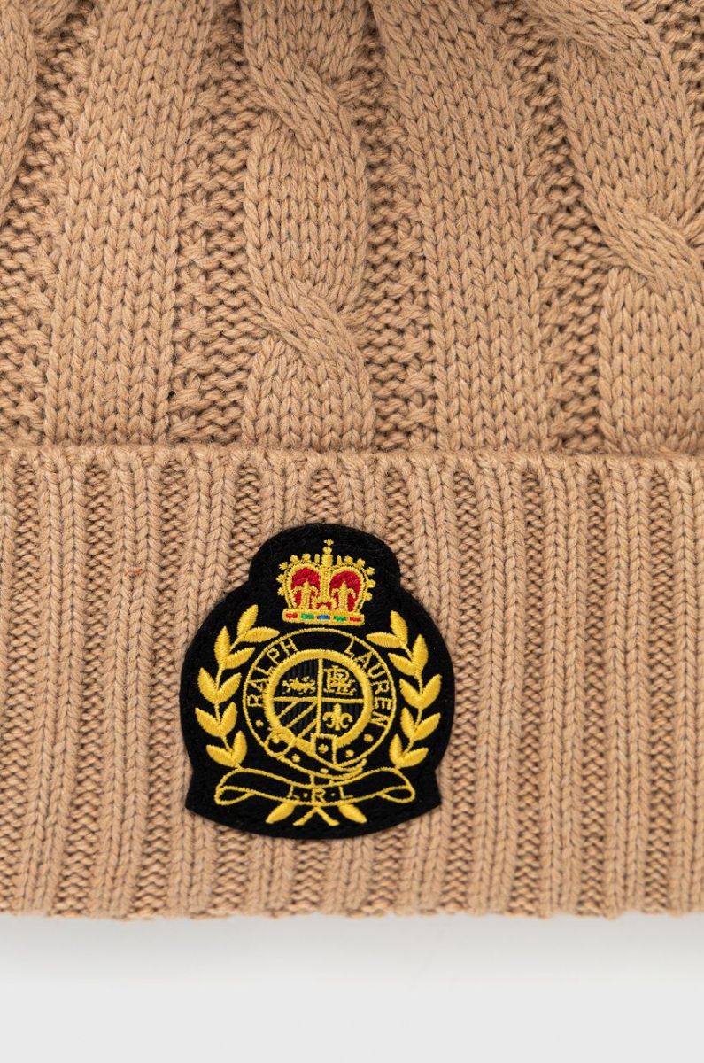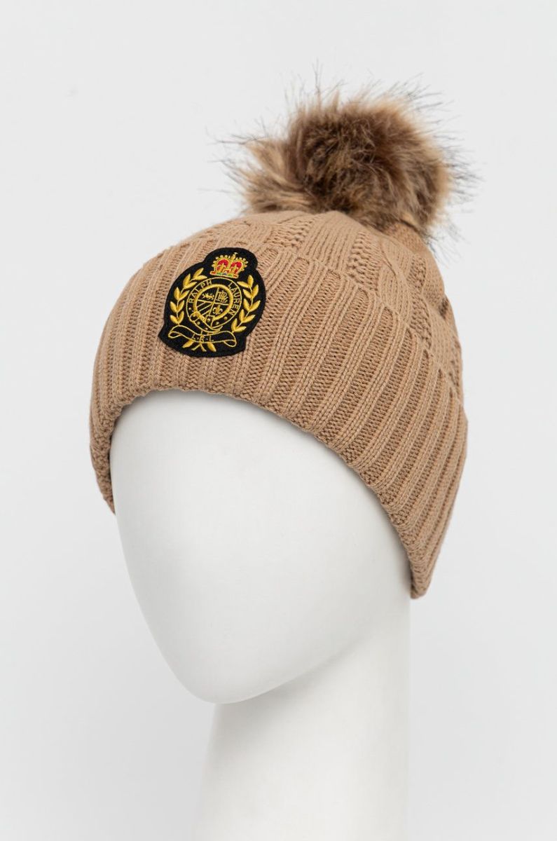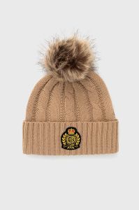 Шапка з домішкою вовни Lauren Ralph Lauren колір коричневий з товстого трикотажу Один розмір
