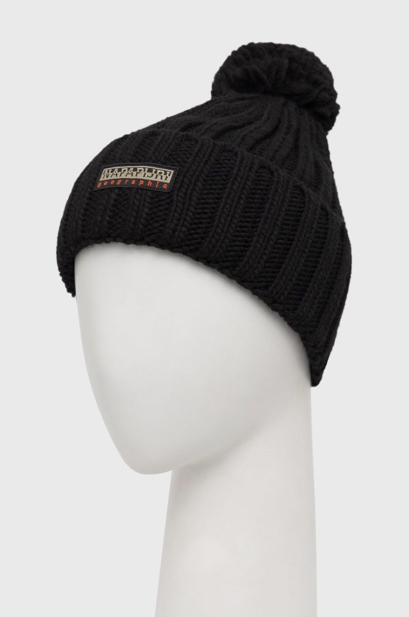 Шапка з домішкою вовни Napapijri колір чорний з товстого трикотажу Один розмір