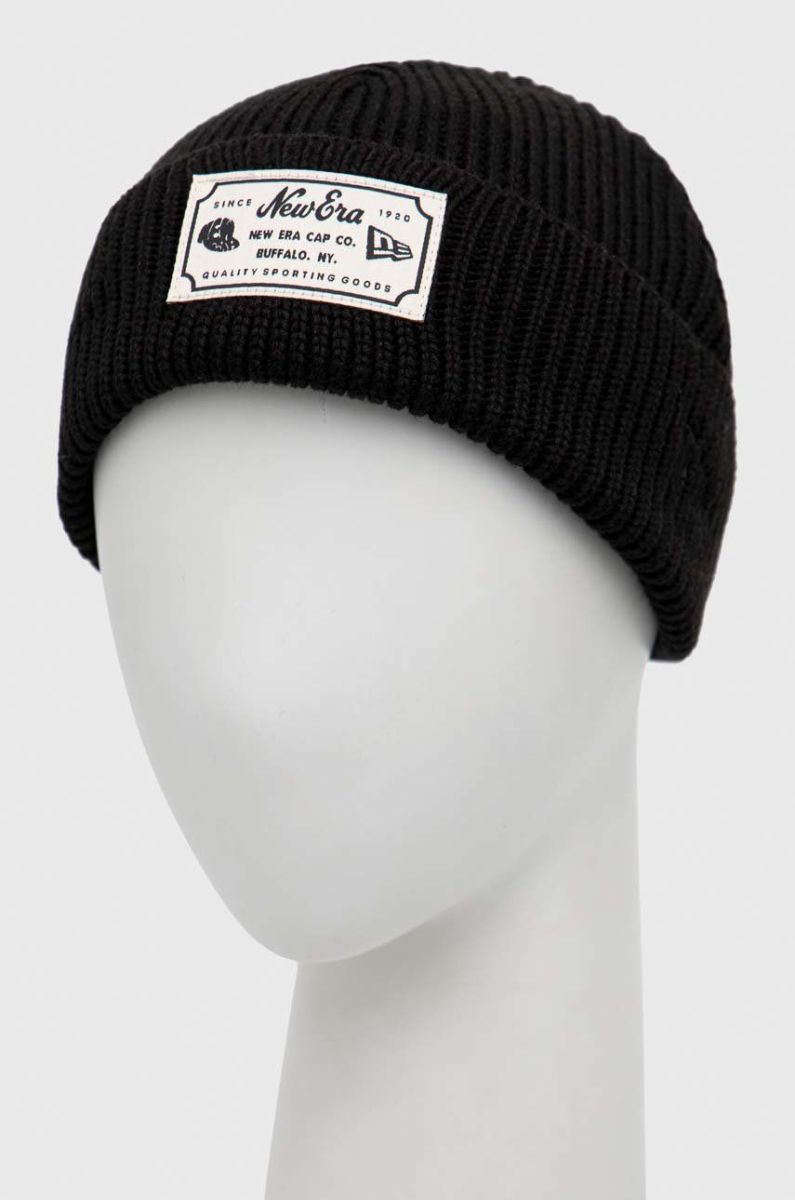 Шапка з домішкою вовни New Era колір чорний з товстого трикотажу