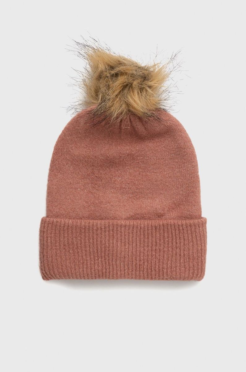 Шапка з домішкою вовни Only колір рожевий з товстого трикотажу Один розмір