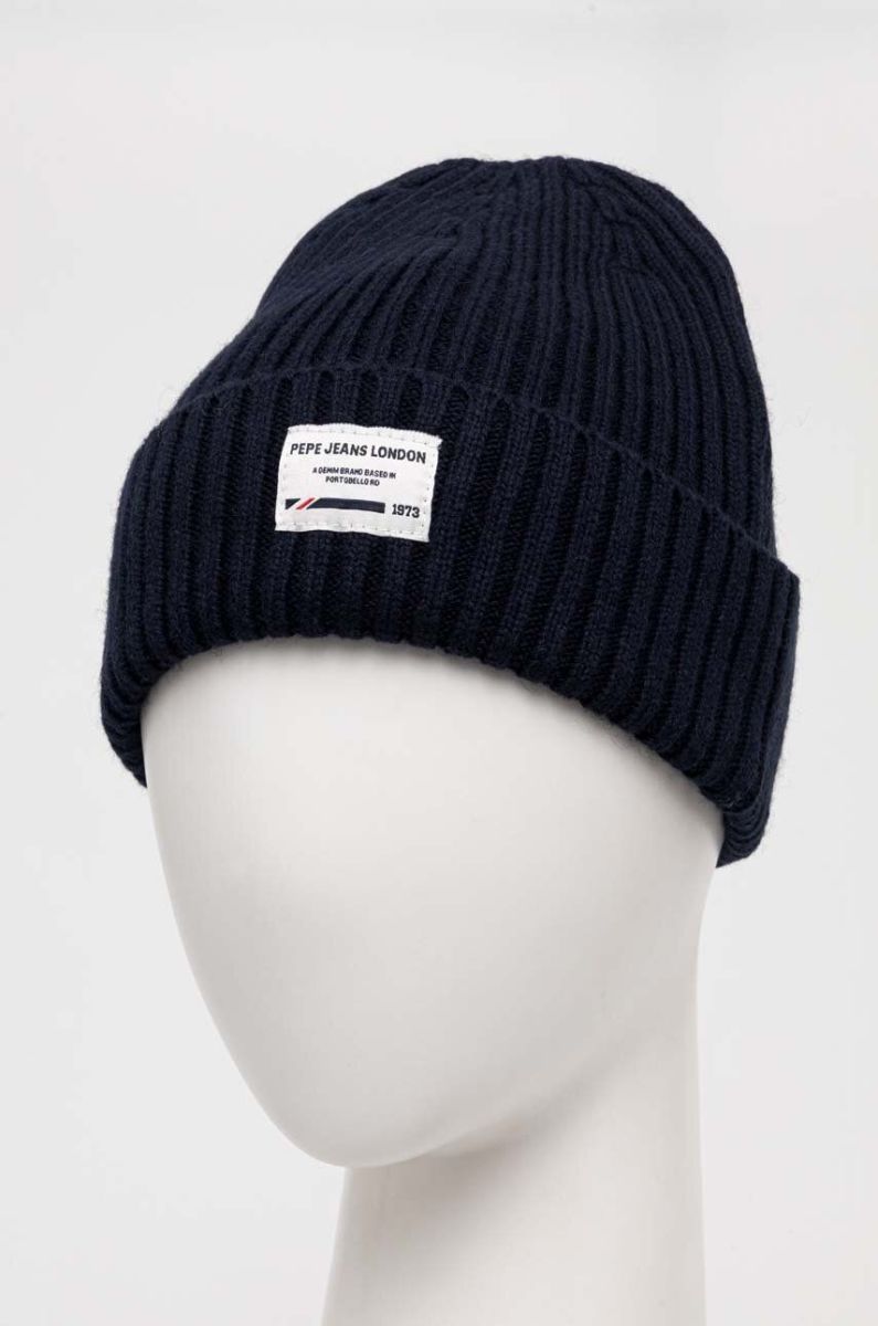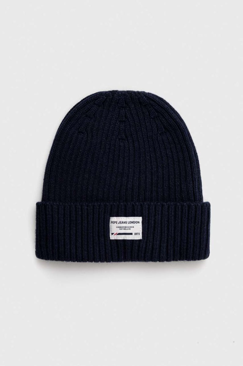 Шапка з домішкою вовни Pepe Jeans Griffin колір синій з товстого трикотажу Один розмір