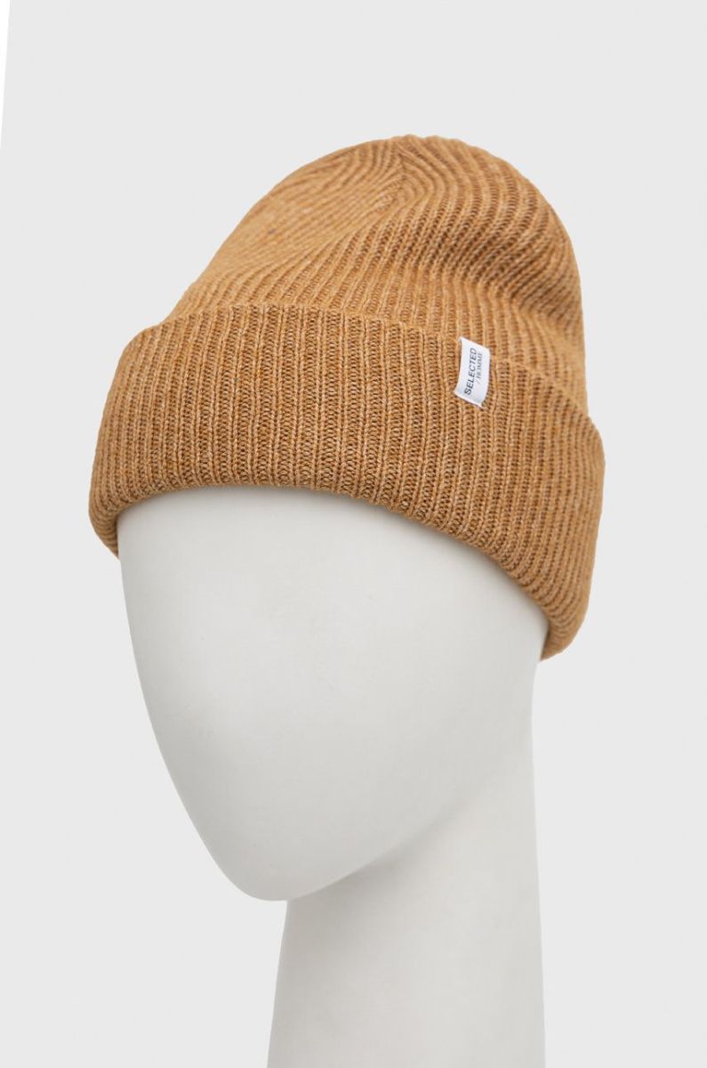 Шапка з домішкою вовни Selected Homme колір бежевий з товстого трикотажу
