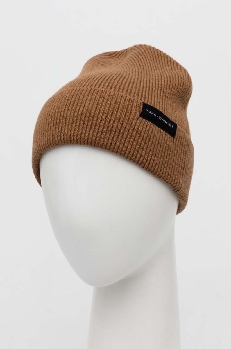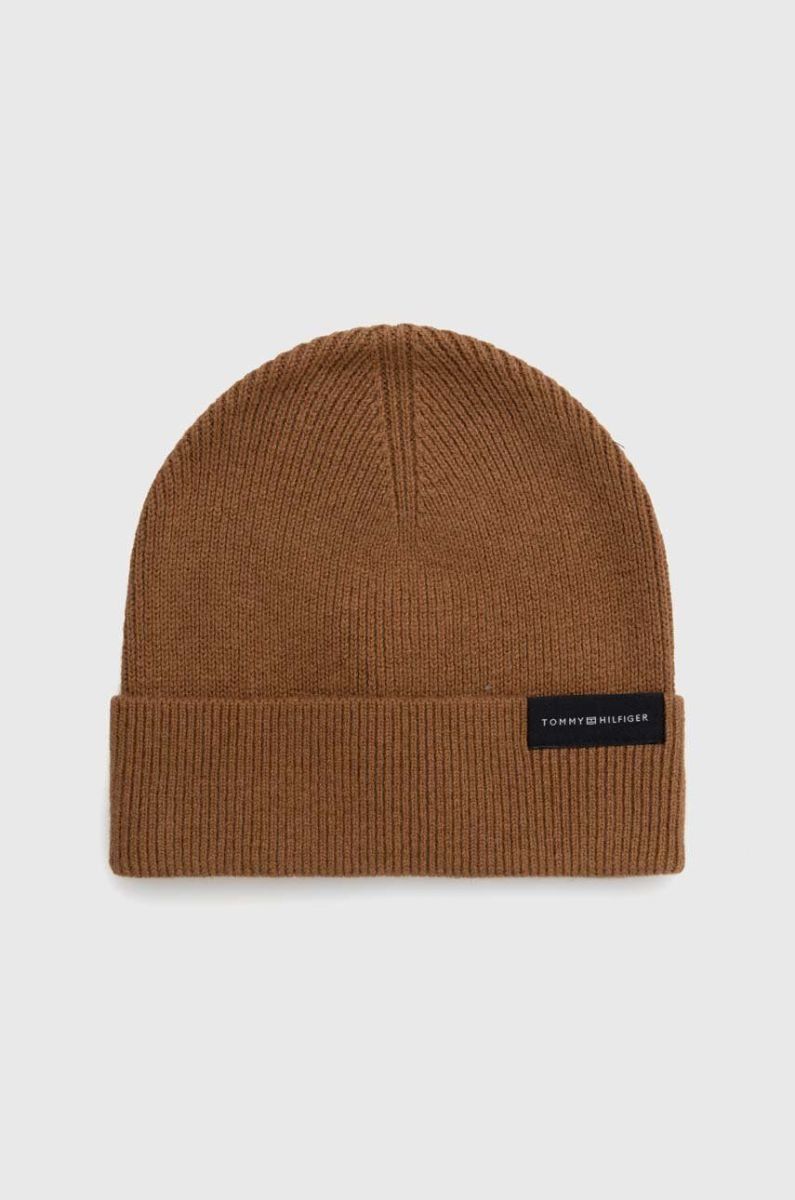 Шапка з домішкою вовни Tommy Hilfiger колір коричневий з тонкого трикотажу
