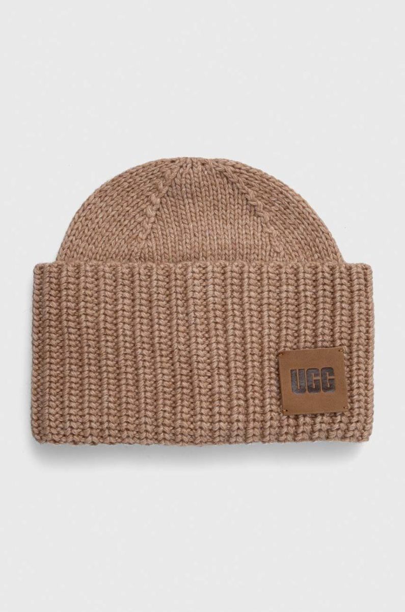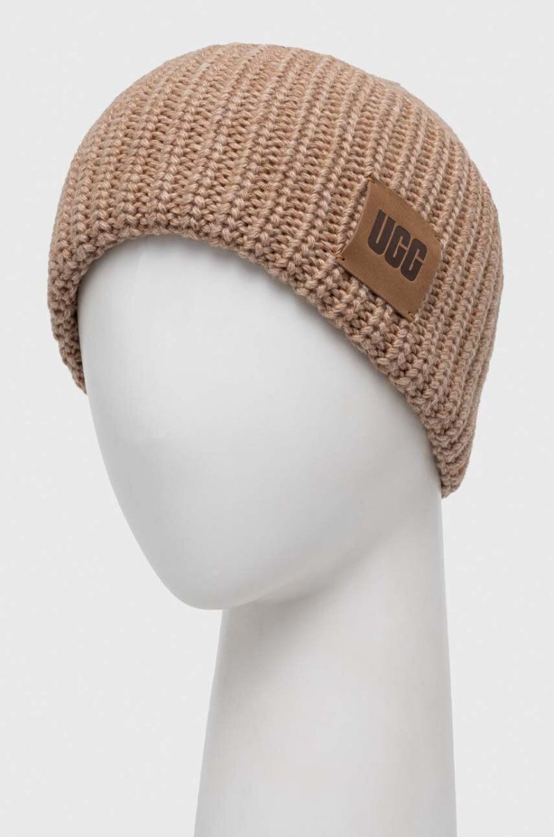 Шапка з домішкою вовни UGG колір бежевий з товстого трикотажу