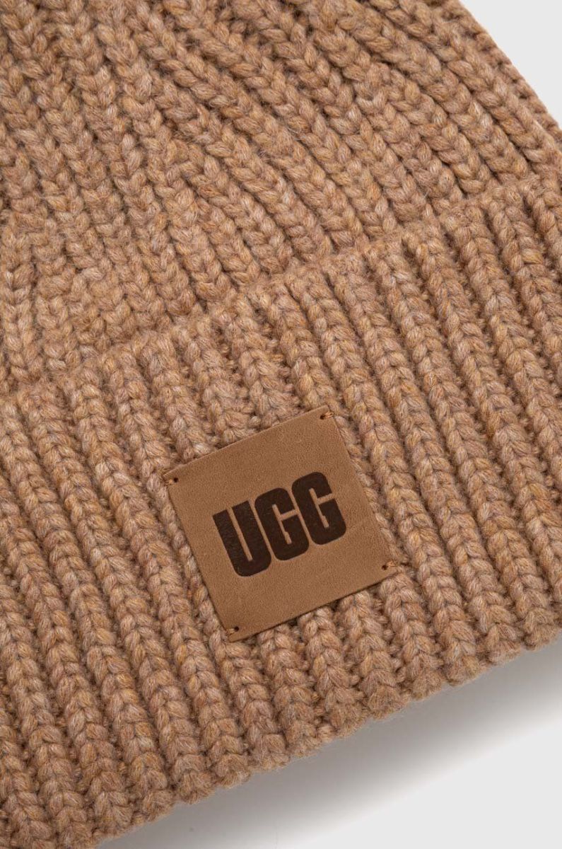 Шапка з домішкою вовни UGG колір коричневий з товстого трикотажу (3577272)