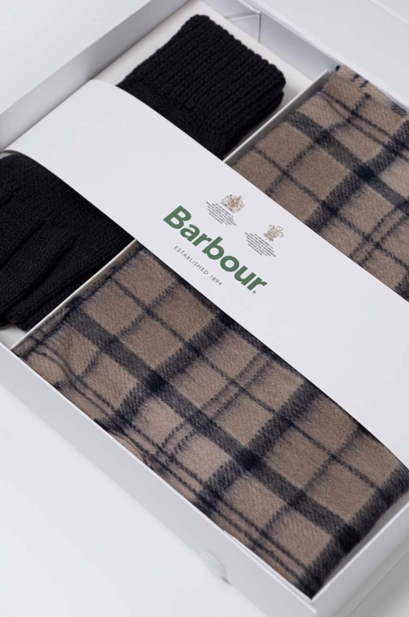 Шарф і рукавички Barbour колір бежевий візерунок Один розмір