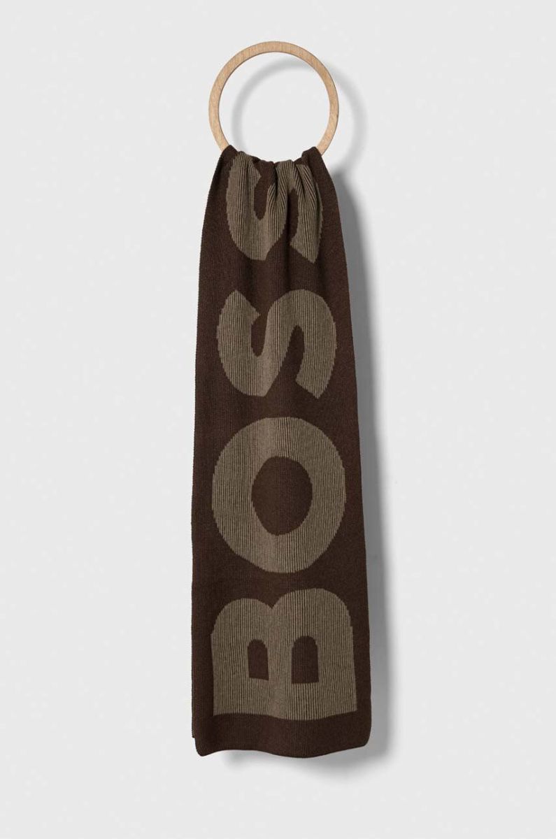 Шарф з домішкою вовни BOSS колір коричневий візерунок