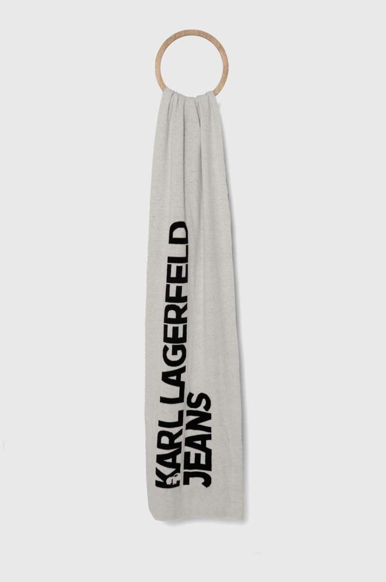 Шарф з домішкою вовни Karl Lagerfeld Jeans колір білий візерунок Один розмір