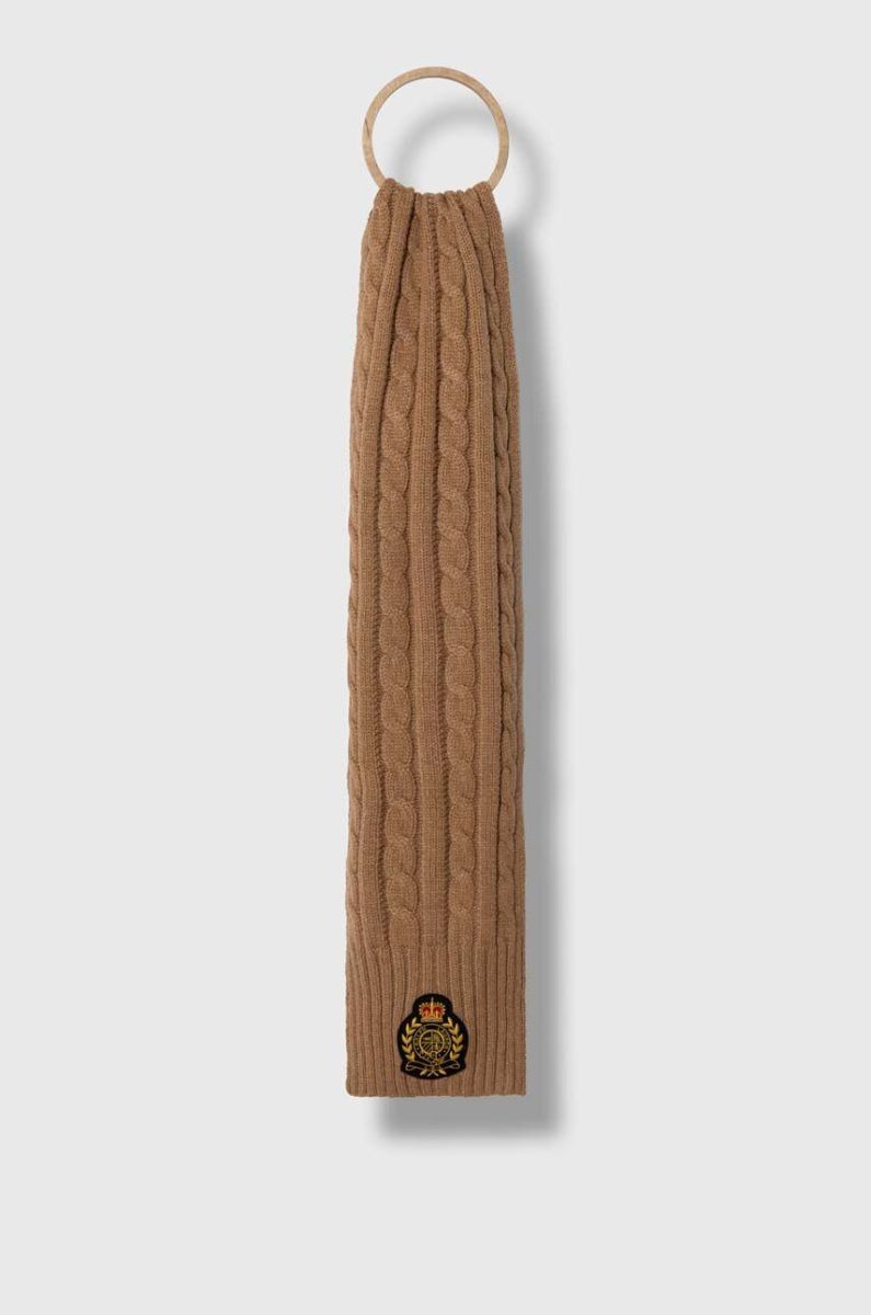 Шарф з домішкою вовни Lauren Ralph Lauren колір коричневий з аплікацією Один розмір
