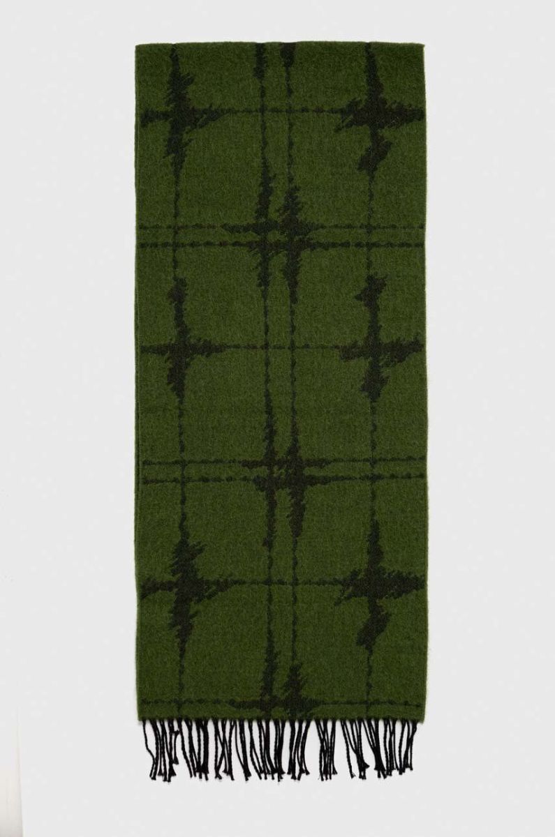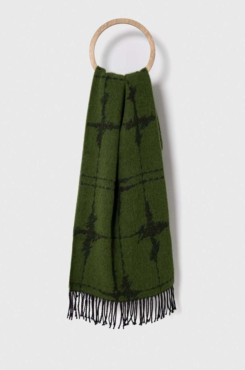 Шарф з домішкою вовни Sisley колір зелений візерунок
