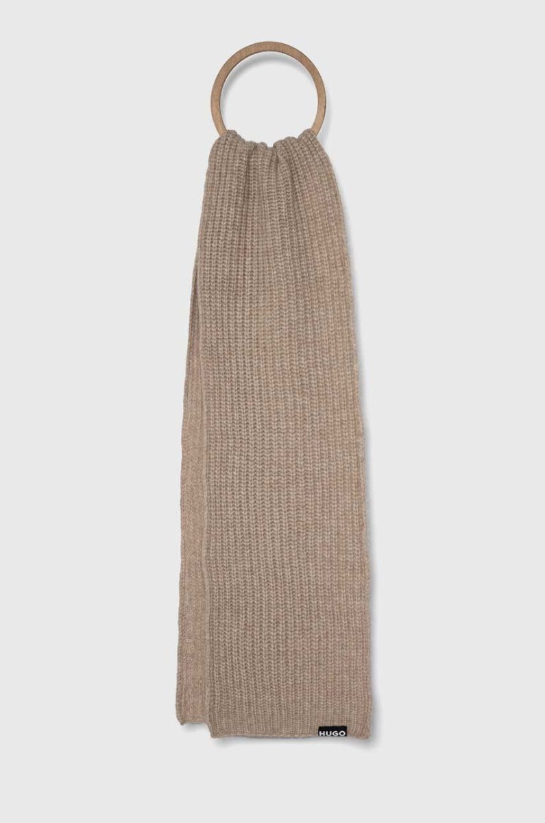 Шерстяна шапка і шарф HUGO колір бежевий Один розмір
