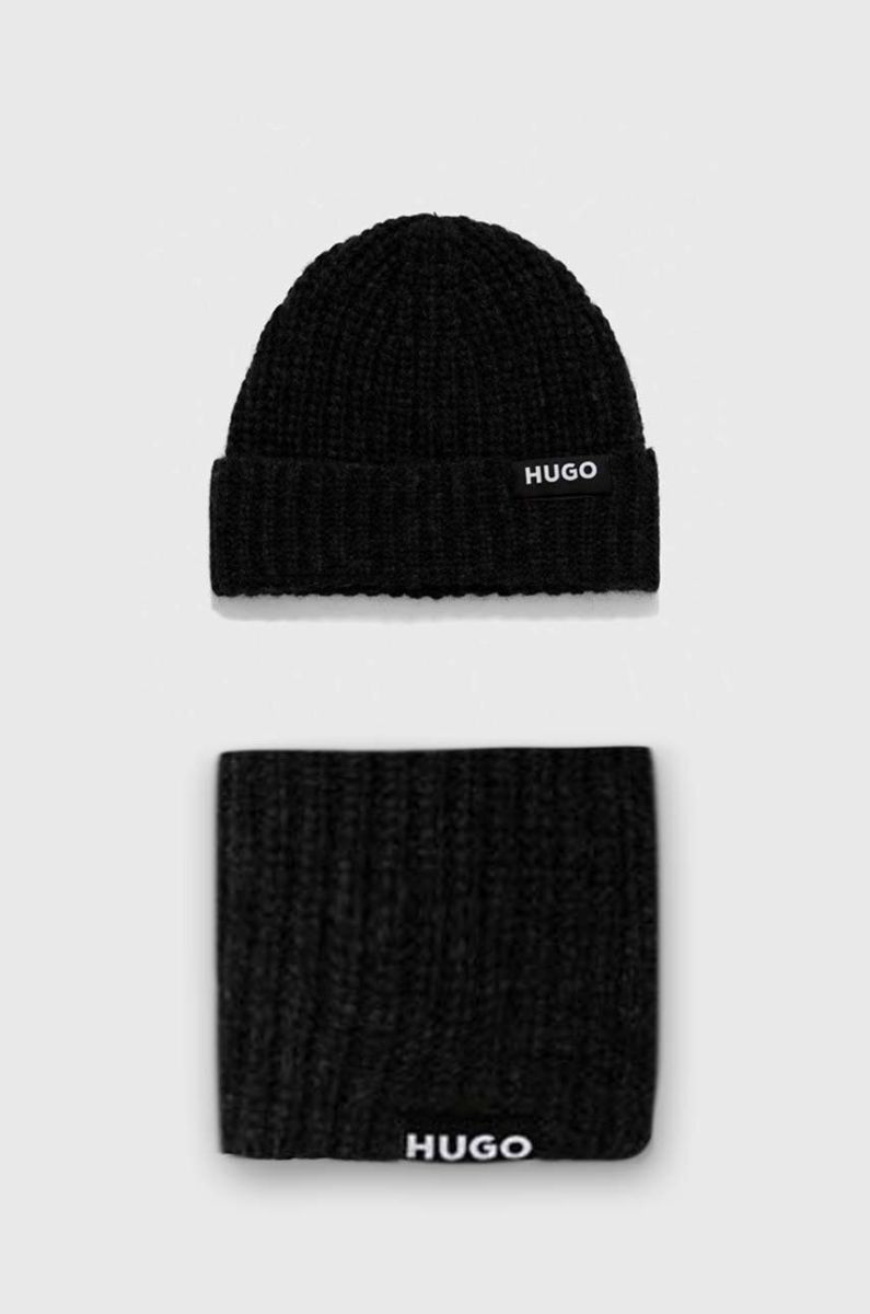 Шерстяна шапка і шарф HUGO колір чорний