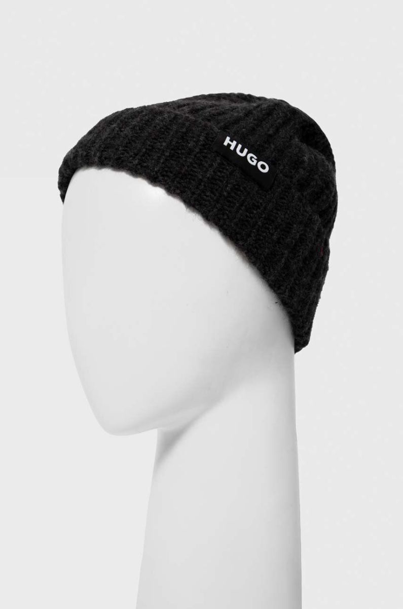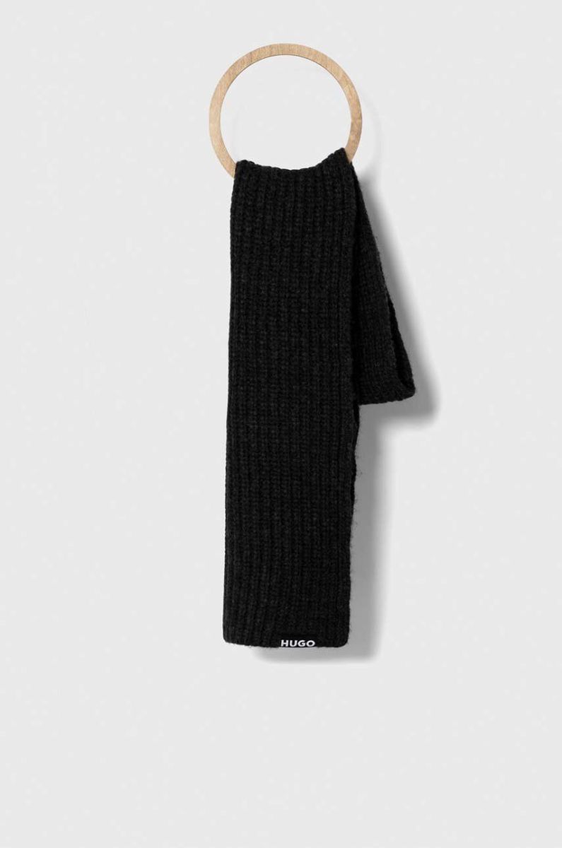 Шерстяна шапка і шарф HUGO колір чорний Один розмір