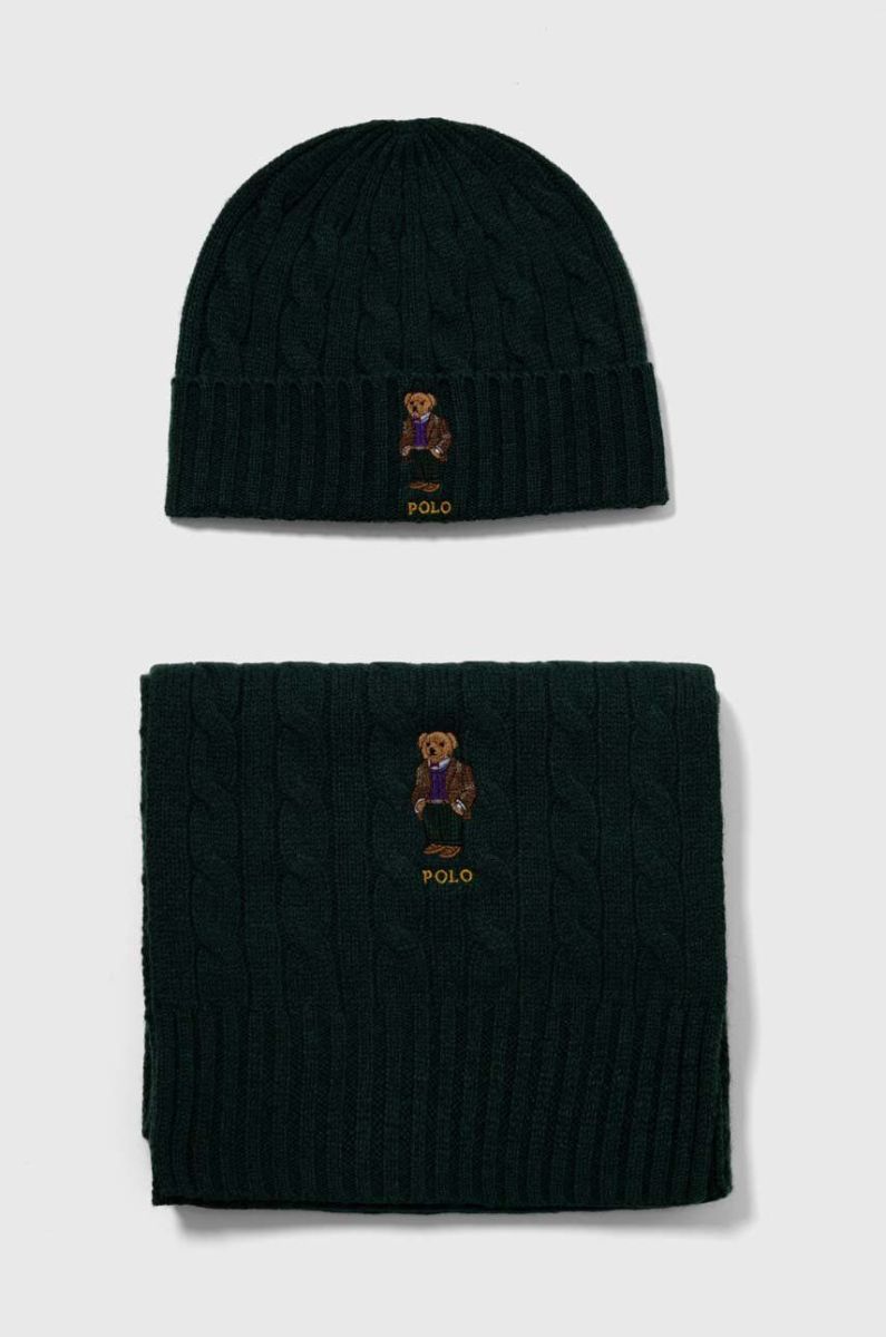 Шерстяна шапка і шарф Polo Ralph Lauren колір зелений