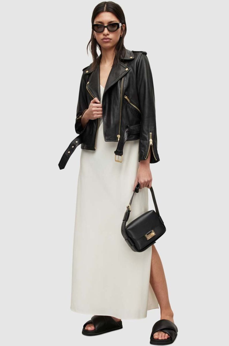 Шкіряна куртка AllSaints жіноча колір чорний перехідна (2633308)