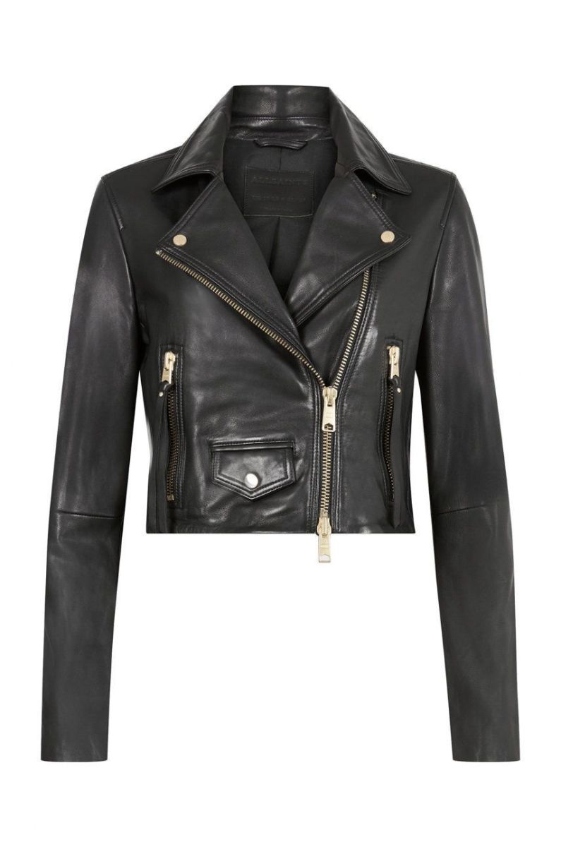 Шкіряна куртка AllSaints жіноча колір чорний перехідна (2711527)