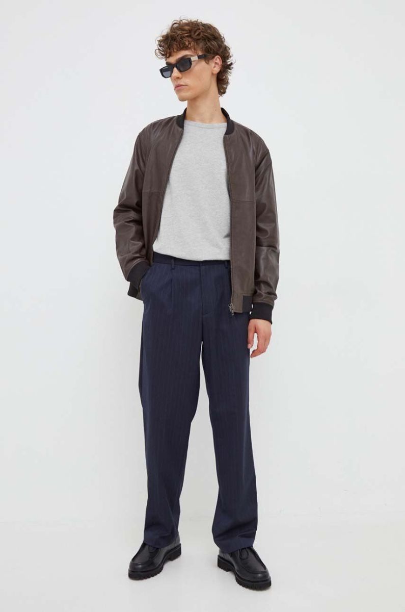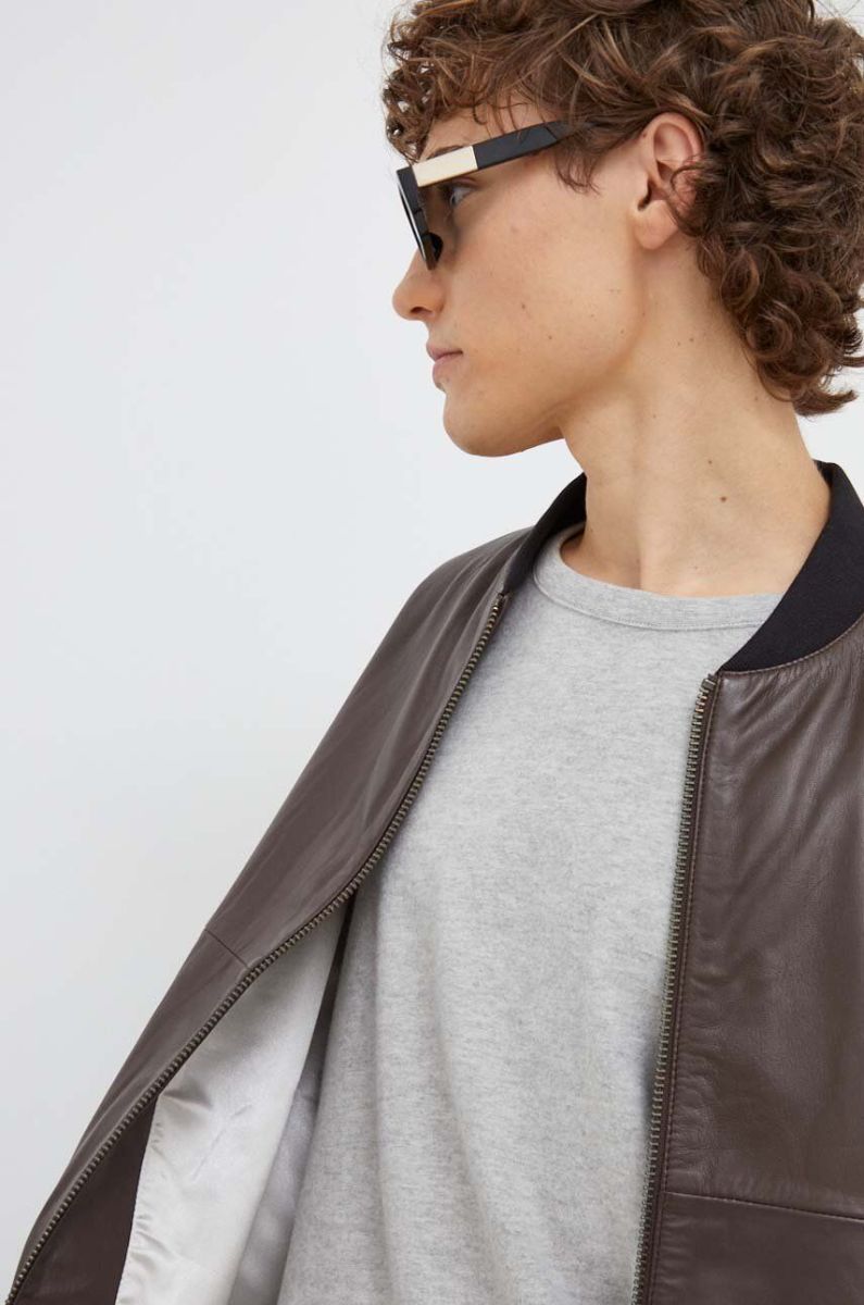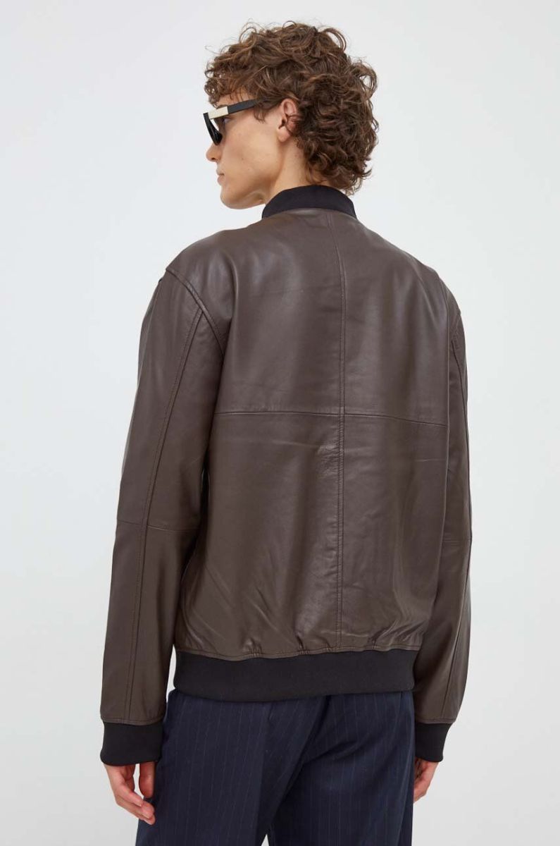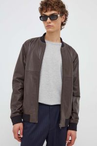 Шкіряна куртка Bruuns Bazaar чоловіча колір коричневий перехідна