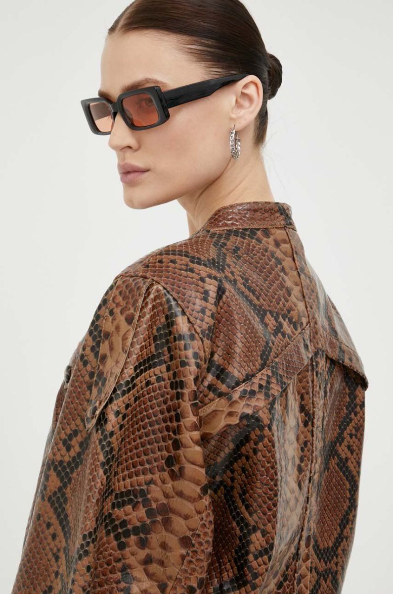 Шкіряна куртка Gestuz Rivera жіноча колір коричневий перехідна oversize