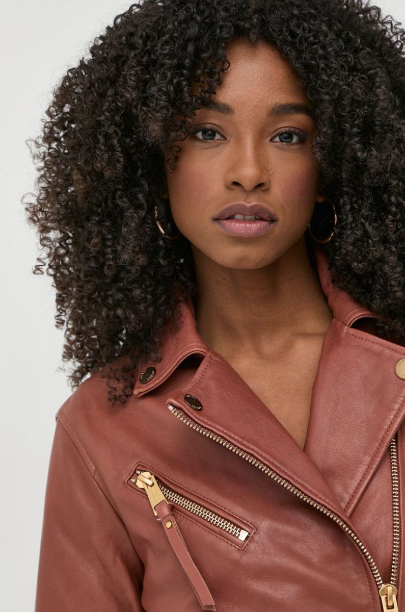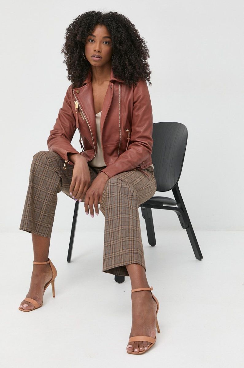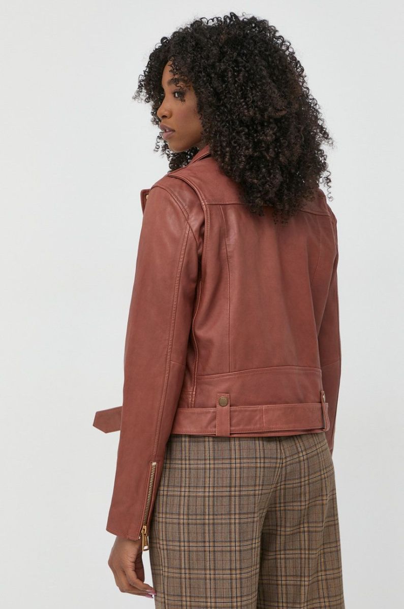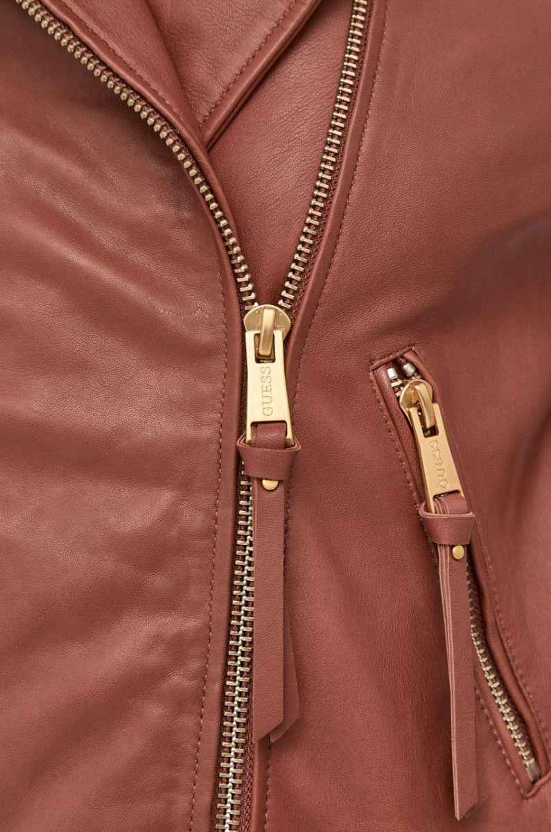 Шкіряна куртка Guess жіноча колір коричневий перехідна