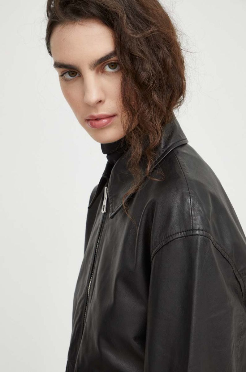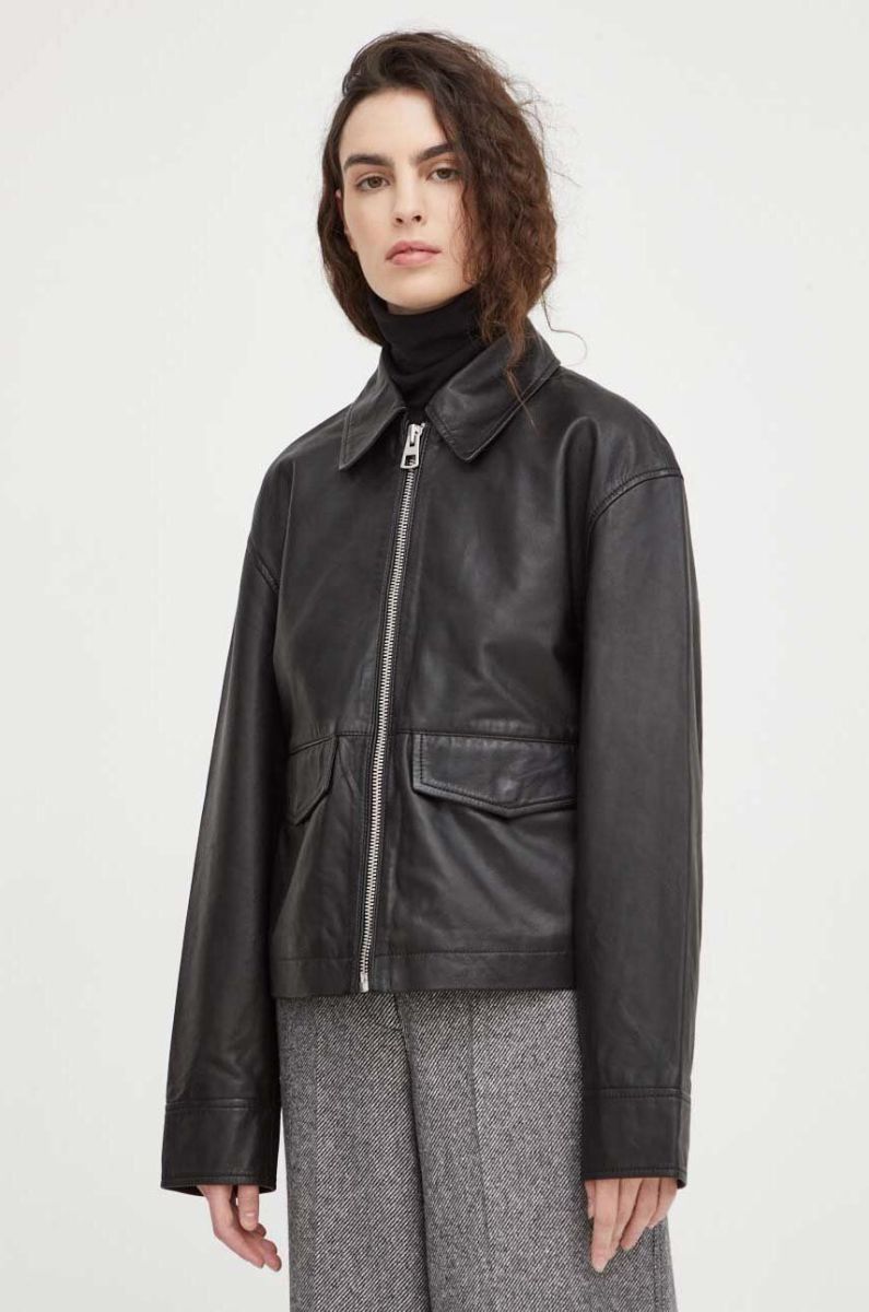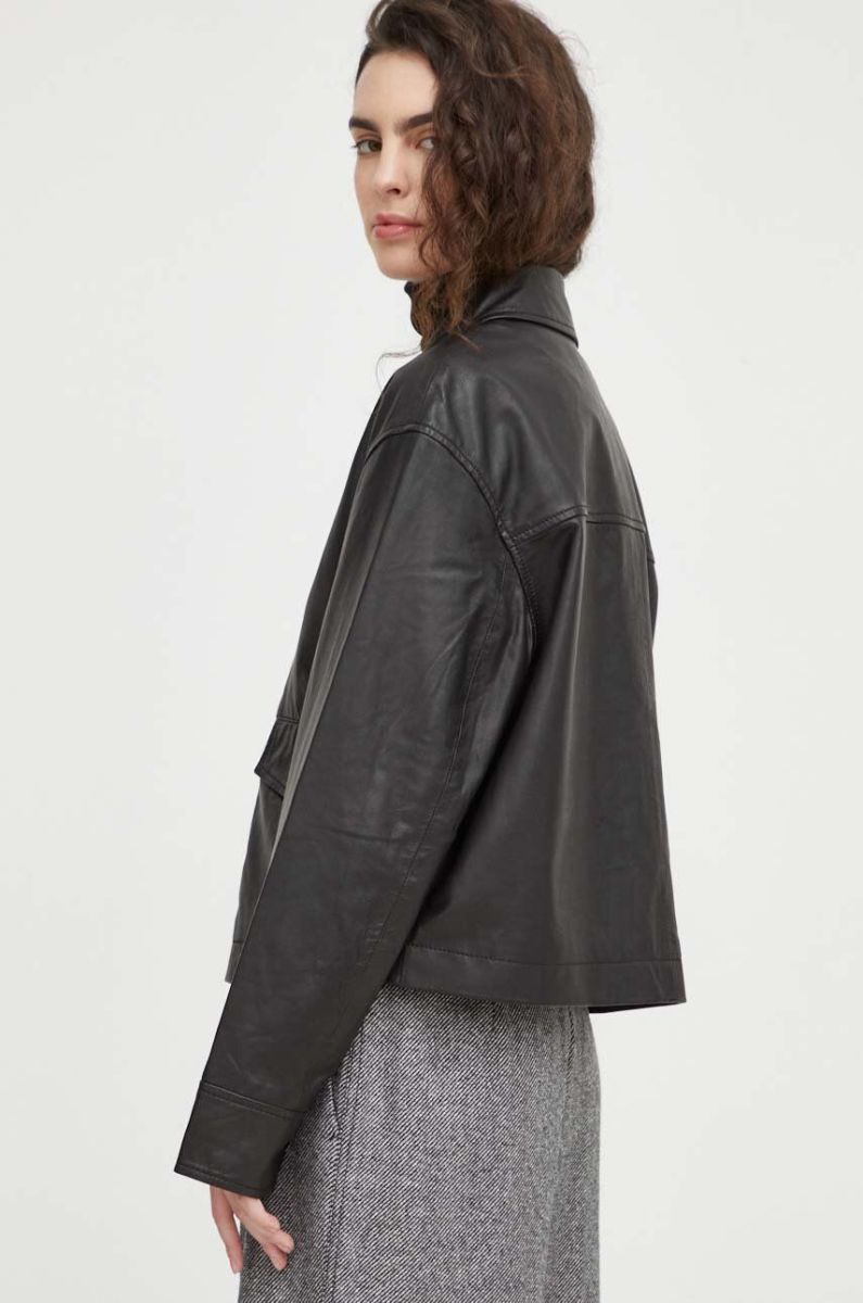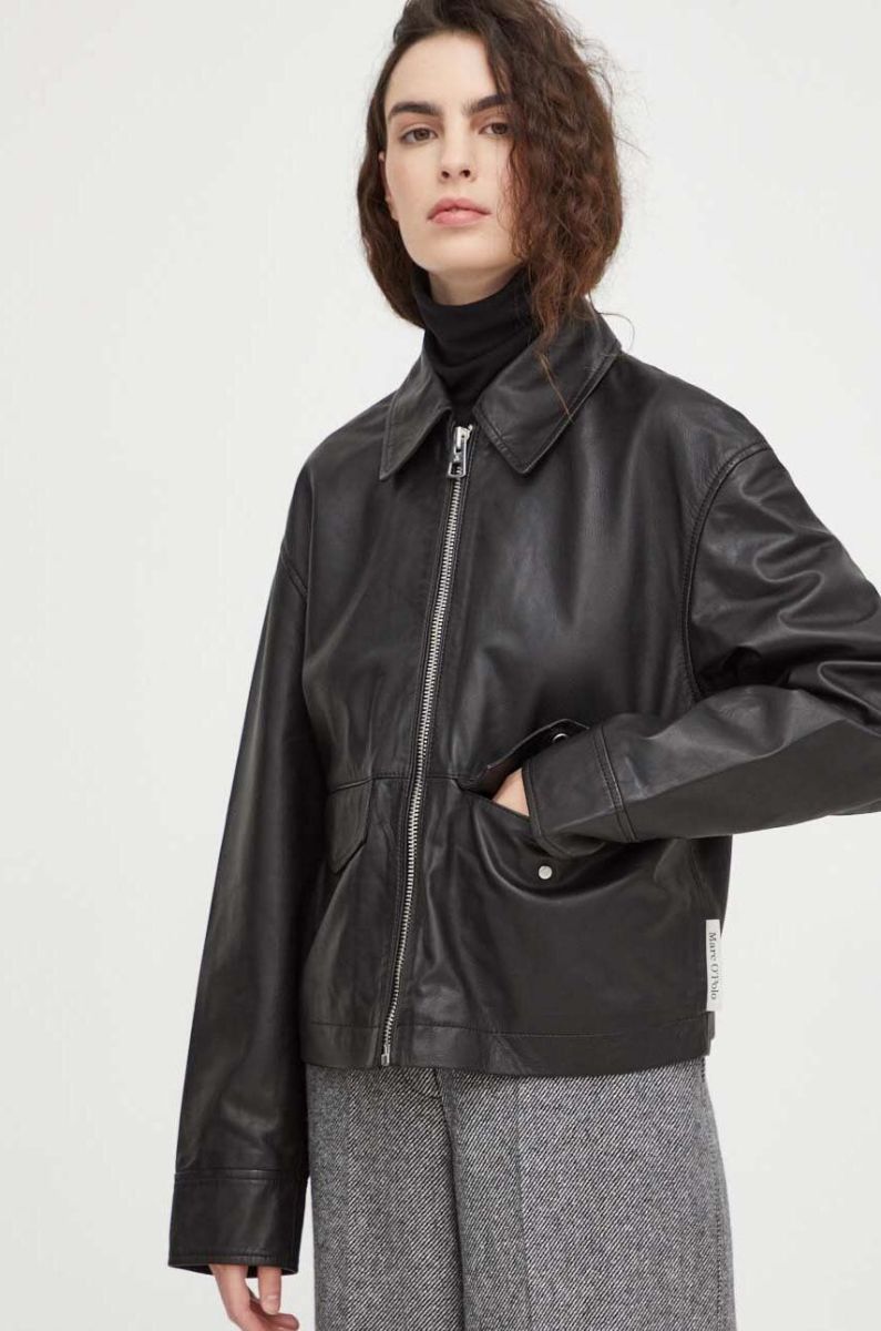 Шкіряна куртка Marc O'Polo жіноча колір чорний перехідна