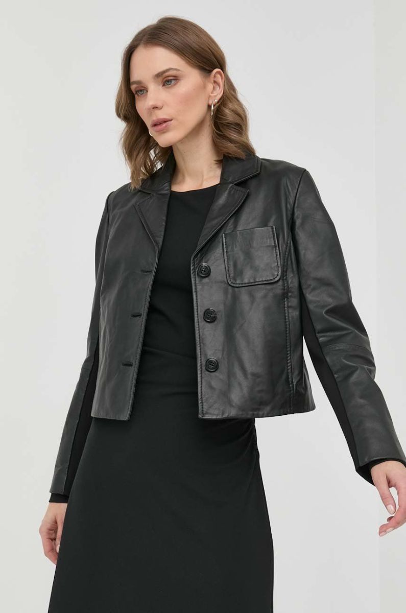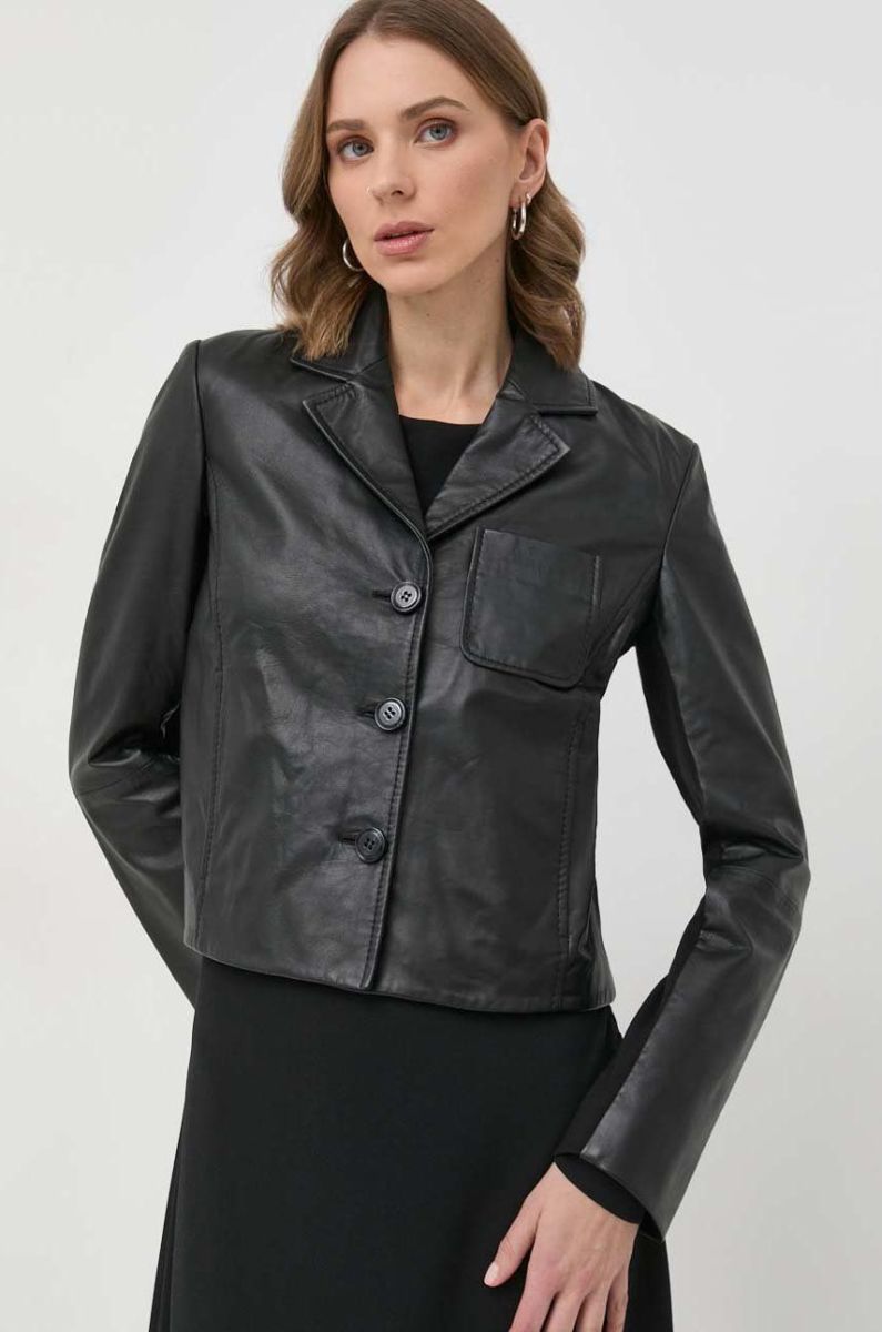 Шкіряна куртка MAX&Co. жіноча колір чорний перехідна
