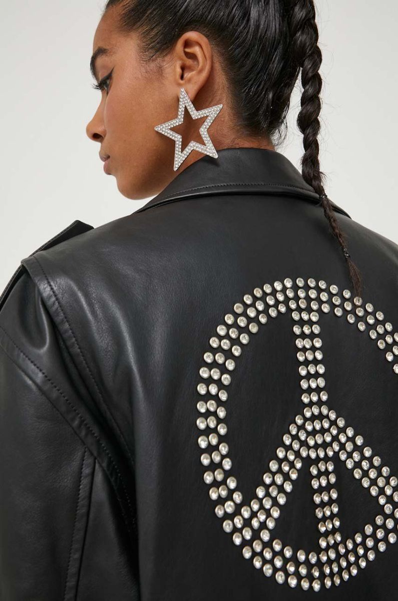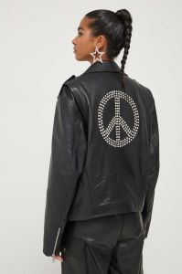Шкіряна куртка Moschino Jeans жіноча колір чорний перехідна oversize