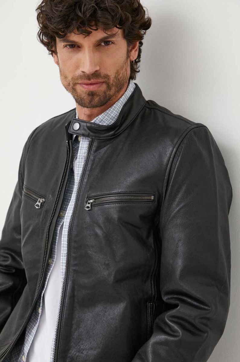 Шкіряна куртка Pepe Jeans чоловіча колір чорний перехідна