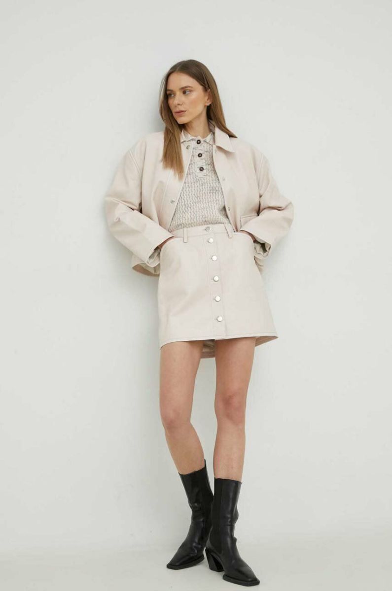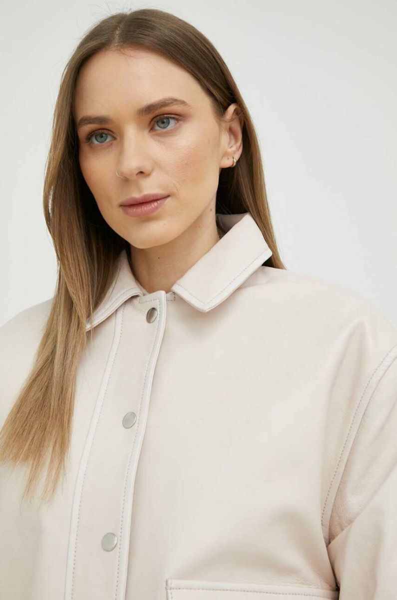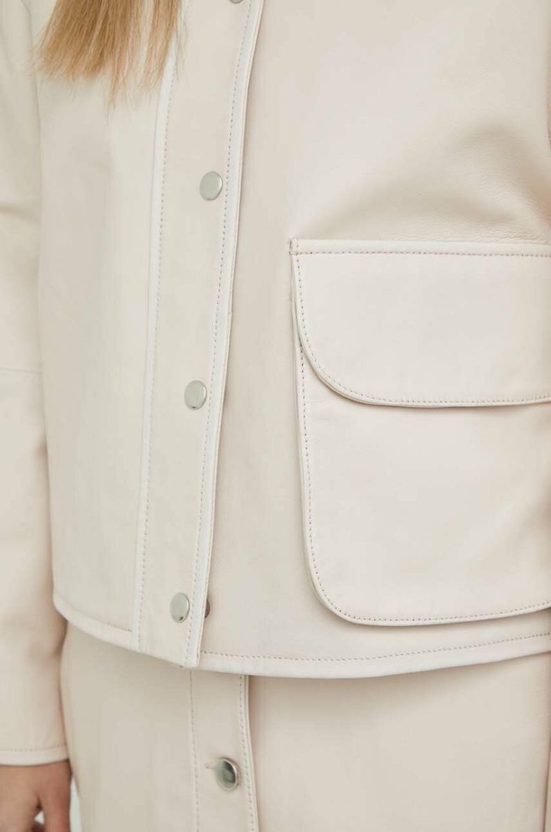 Шкіряна куртка Samsoe Samsoe жіноча колір бежевий перехідна