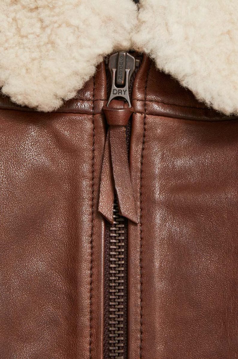 Шкіряна куртка Superdry жіноча колір коричневий перехідна