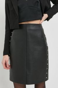 Шкіряна спідниця BOSS колір чорний mini пряма (2914998)