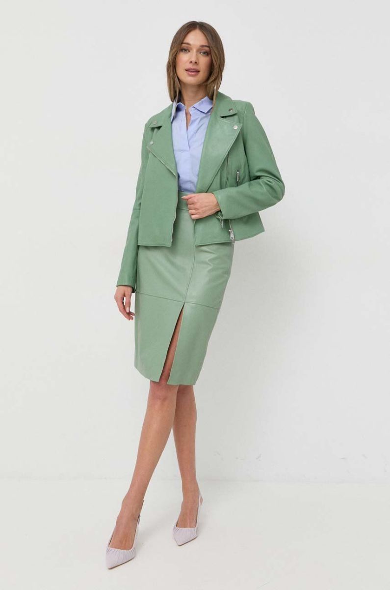Шкіряна спідниця BOSS колір зелений mini пряма