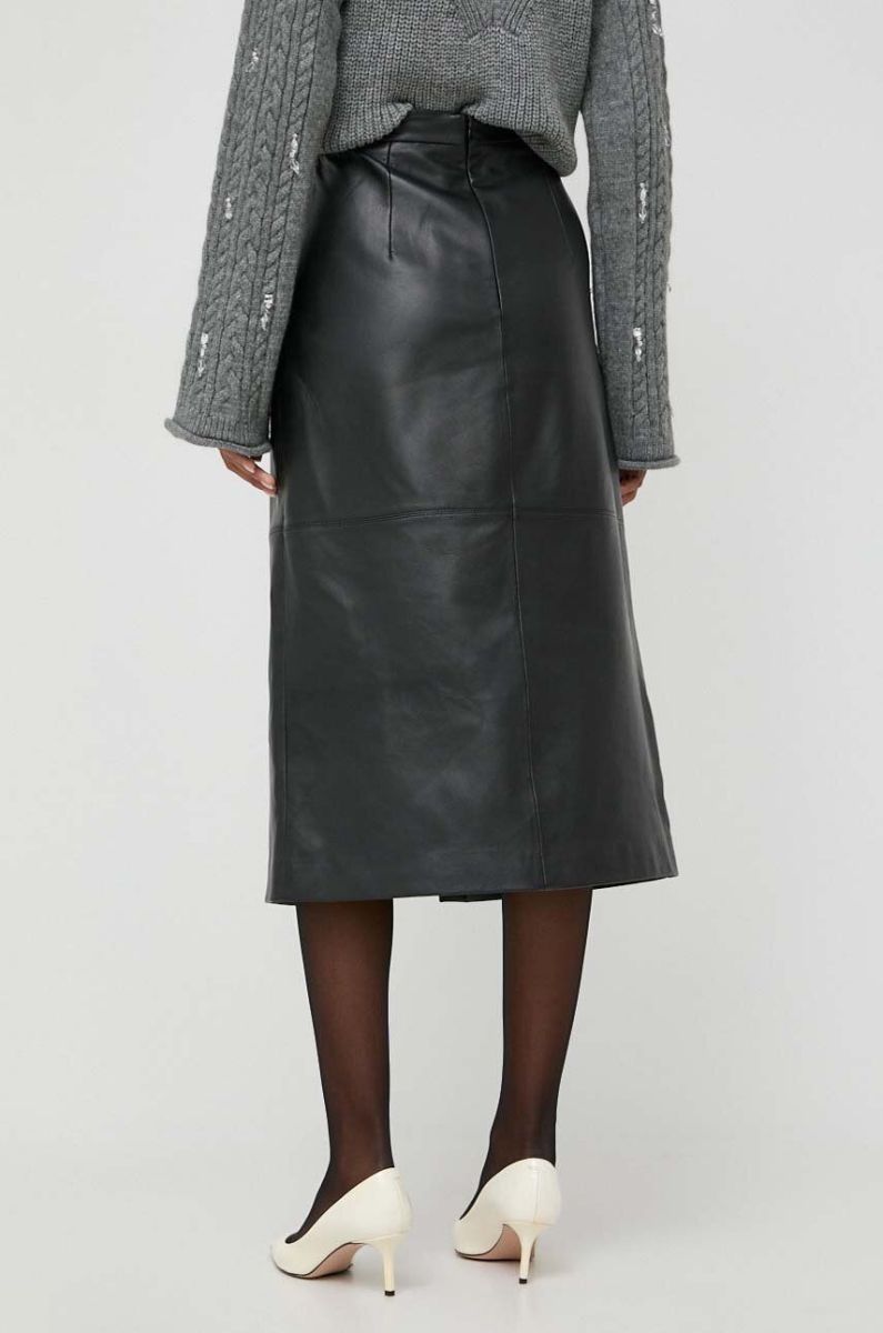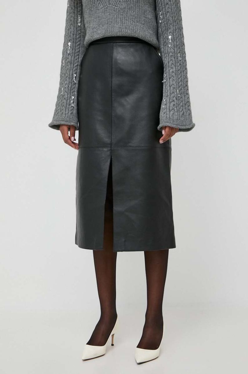 Шкіряна спідниця Luisa Spagnoli колір чорний midi пряма