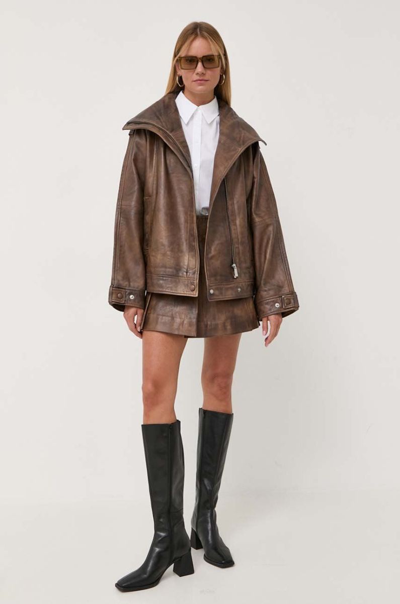 Шкіряна спідниця Remain колір коричневий mini розкльошена