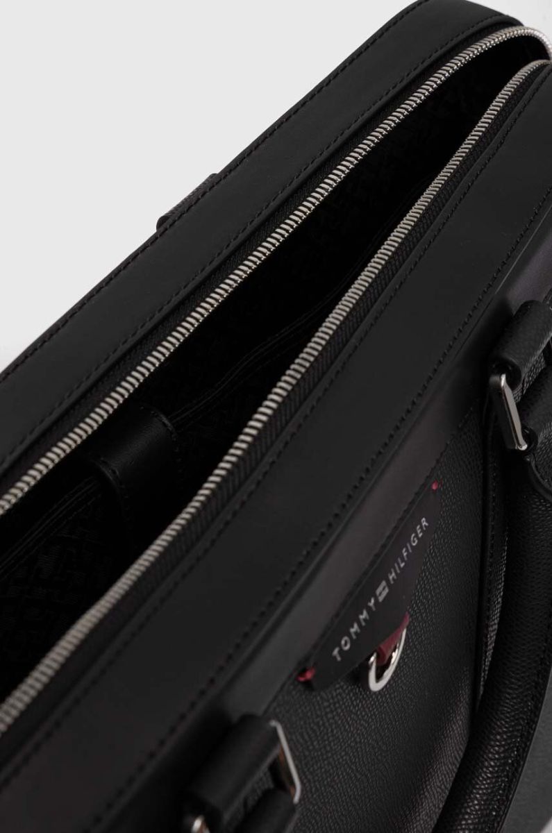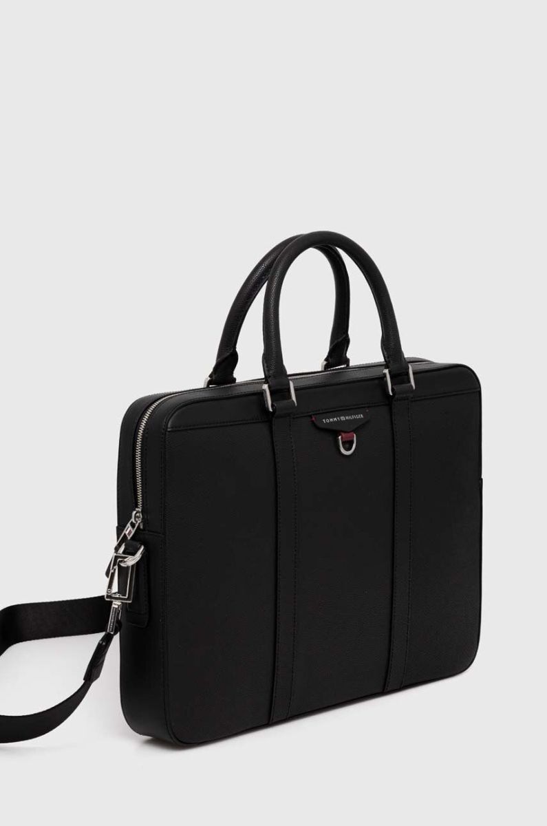 Шкіряна сумка для ноутбука Tommy Hilfiger колір чорний Один розмір