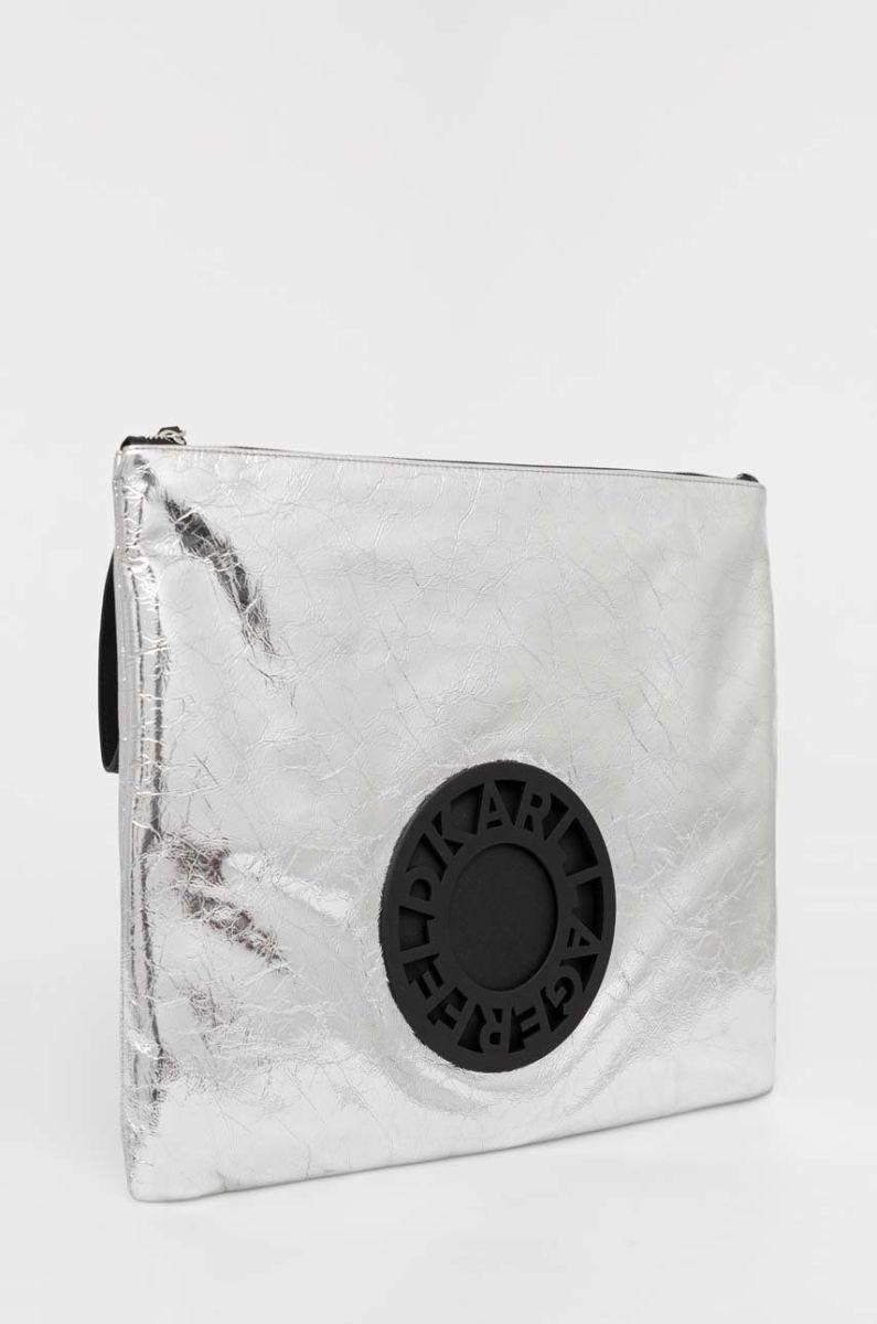 Шкіряна сумка Karl Lagerfeld колір срібний