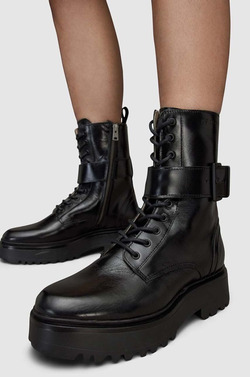 Шкіряні черевики AllSaints Onyx жіночі колір чорний на плоскому ходу