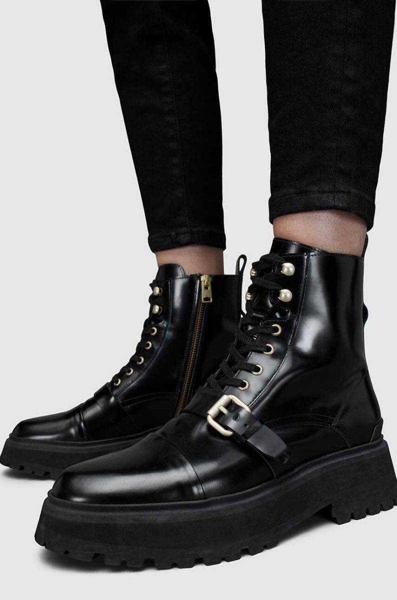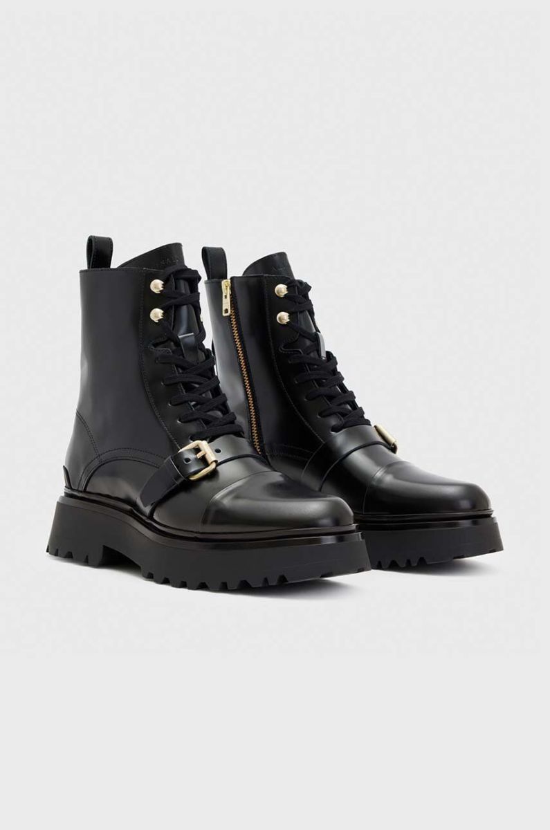 Шкіряні черевики AllSaints Stellar жіночі колір чорний на платформі WF724X