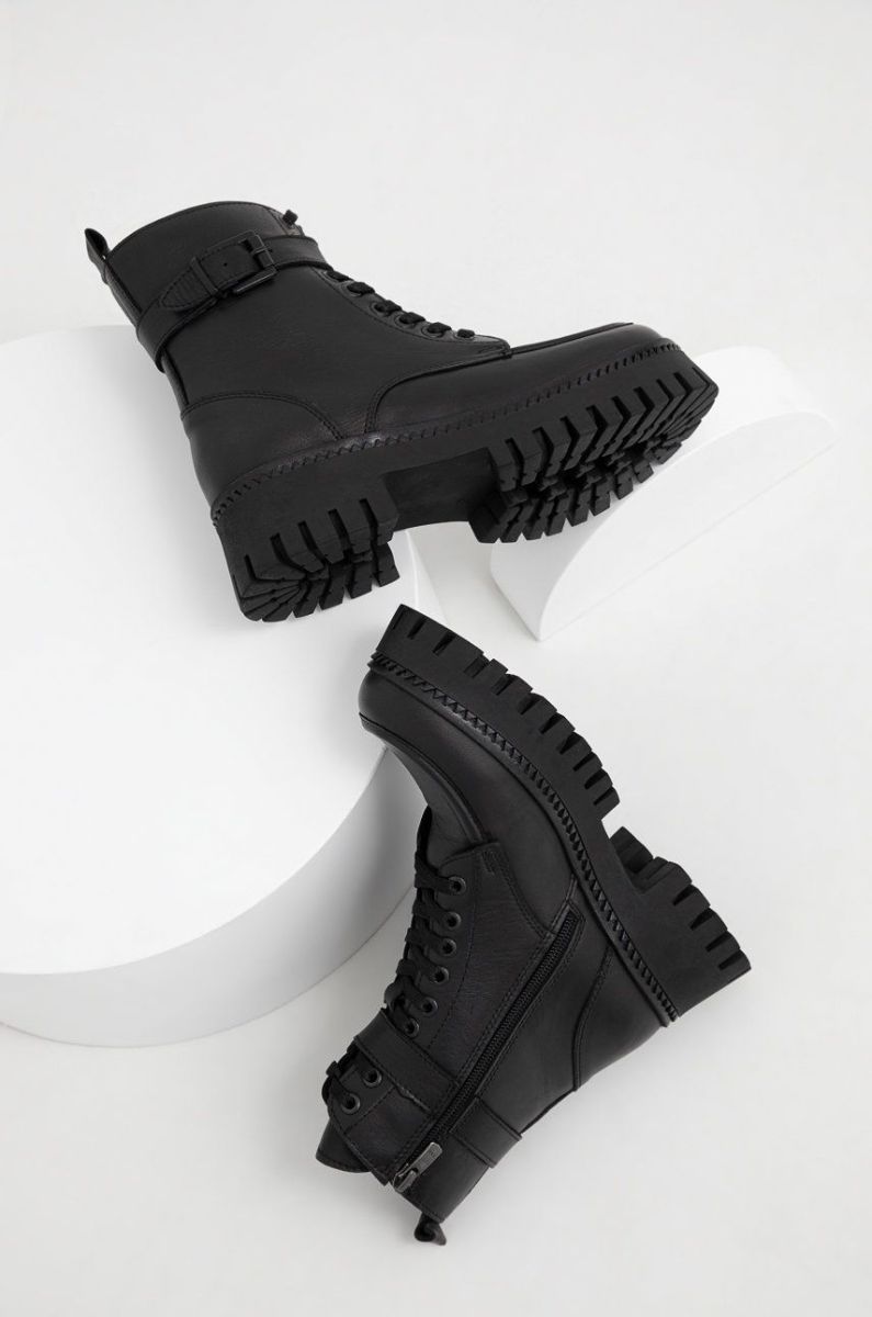 Шкіряні черевики Answear Lab жіночі колір чорний на плоскому ходу злегка утеплена (2645067)