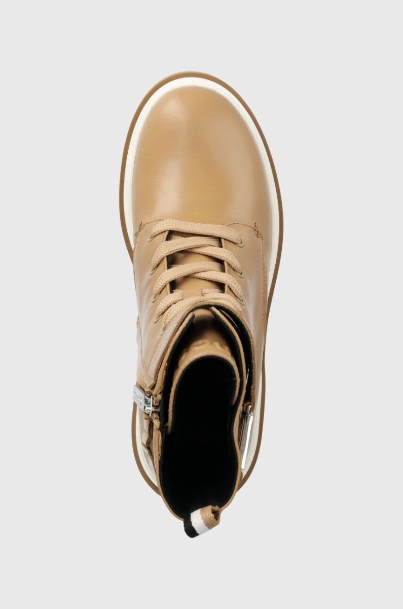 Шкіряні черевики BOSS Carol жіночі колір бежевий каблук блок 50498803