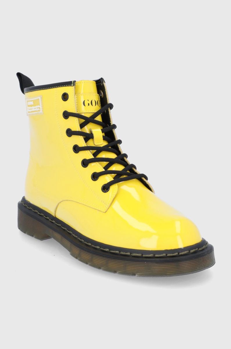 Шкіряні черевики GOE жіночі колір жовтий на плоскому ходу утеплене