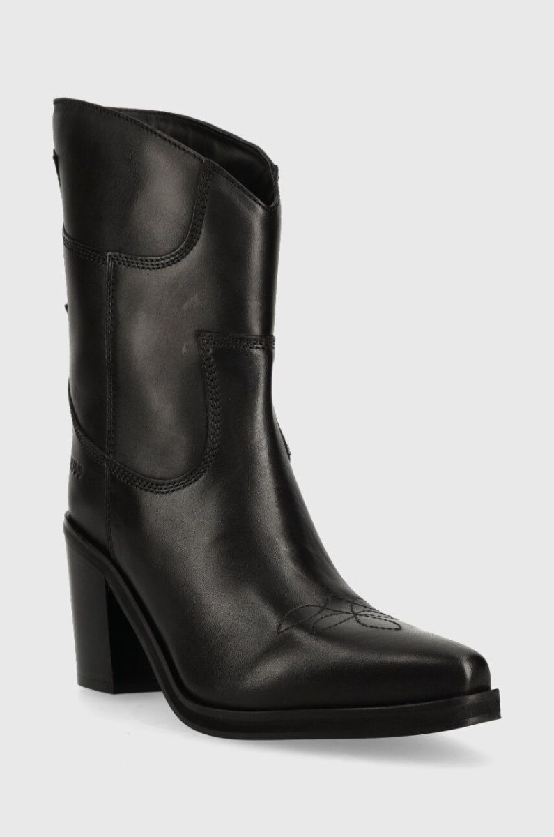 Шкіряні черевики HUGO Miley жіночі колір чорний каблук блок 50498091