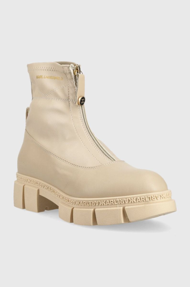 Шкіряні черевики Karl Lagerfeld ARIA жіночі колір бежевий на плоскому ходу KL43260