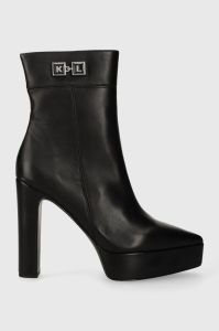 Шкіряні черевики Karl Lagerfeld SOIREE PLATFORM жіночі колір чорний каблук блок KL31760