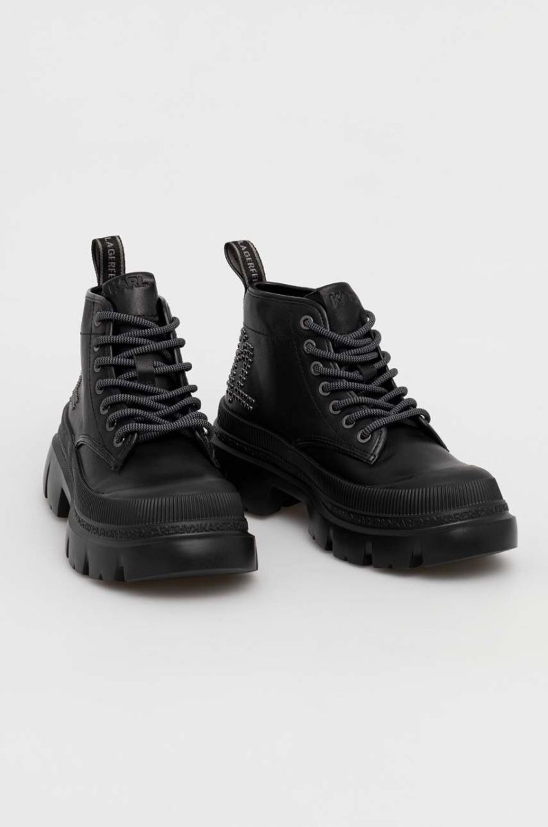 Шкіряні черевики Karl Lagerfeld TREKKA MAX жіночі колір чорний на платформі KL43540
