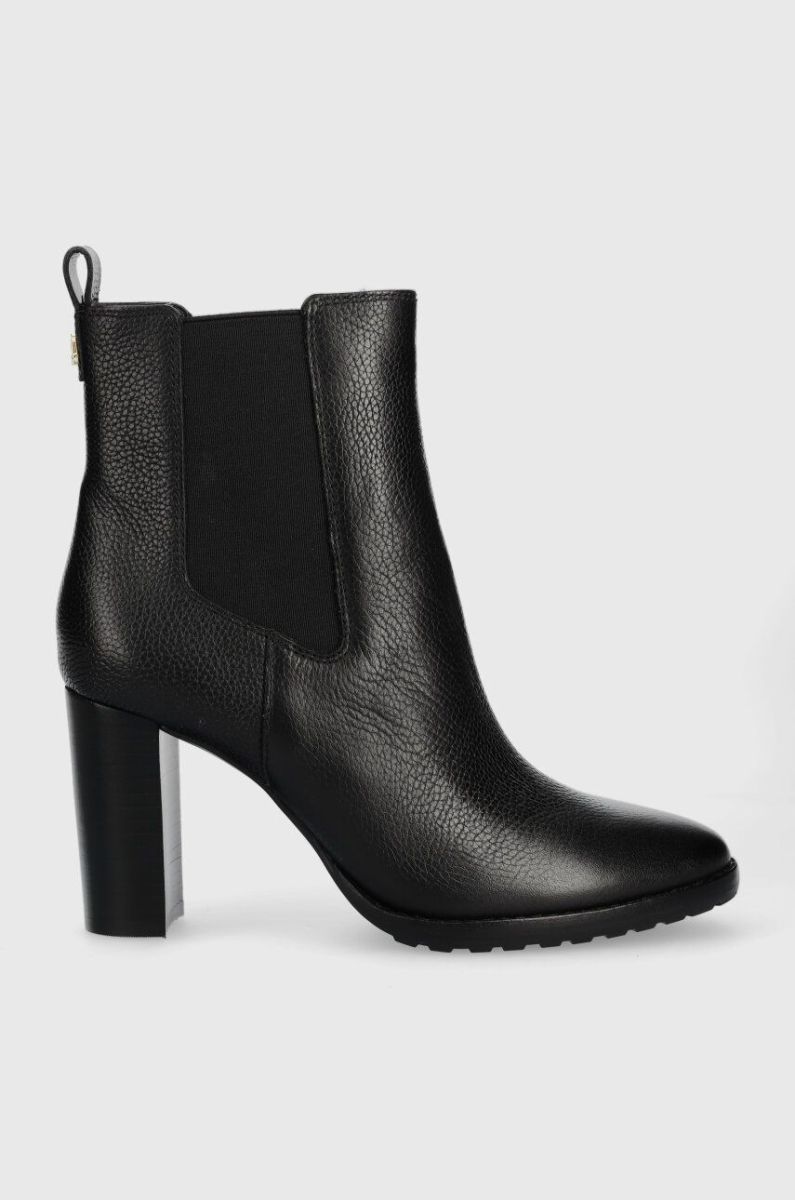 Шкіряні черевики Lauren Ralph Lauren Mylah жіночі колір чорний каблук блок 802912285001