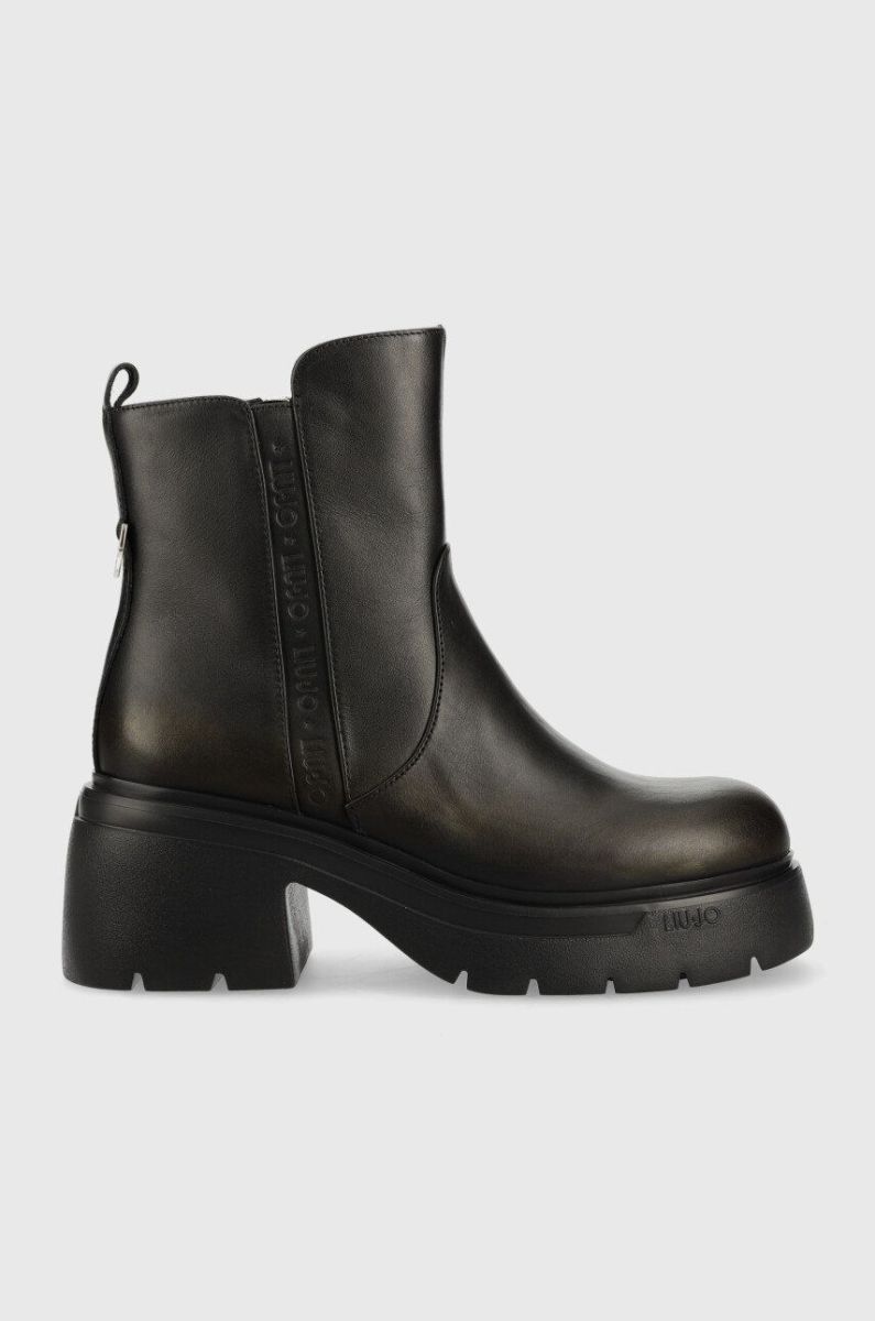 Шкіряні черевики Liu Jo Carrie 06 жіночі колір чорний каблук блок