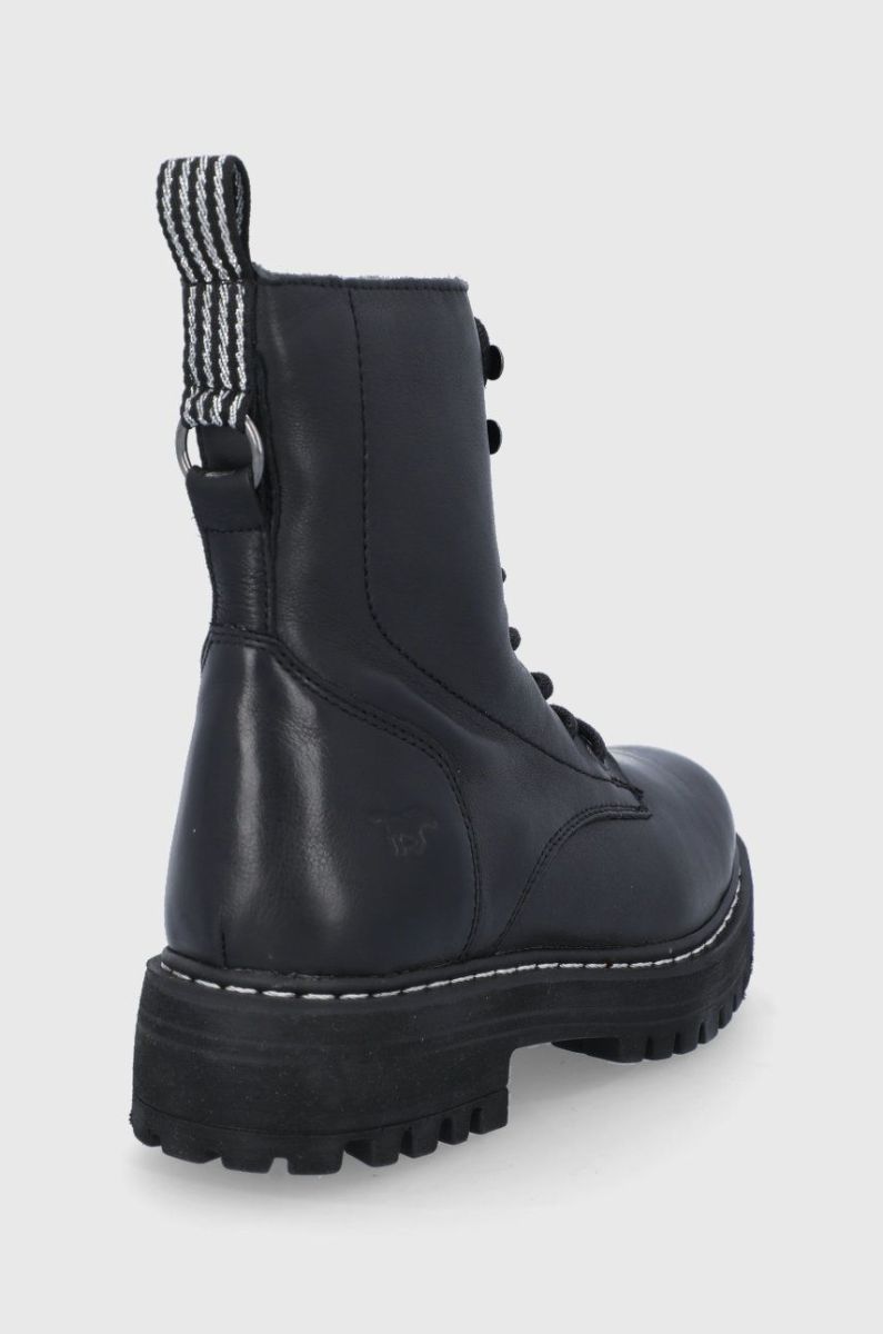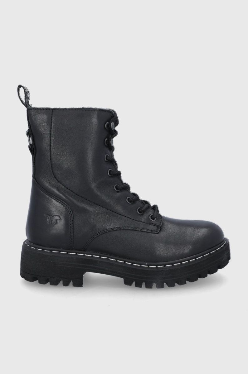 Шкіряні черевики Mustang жіночі колір чорний на плоскому ходу (1835113)