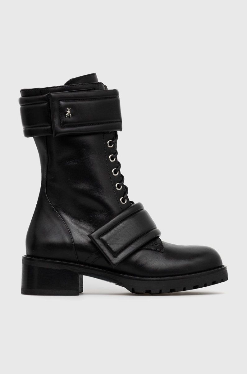 Шкіряні черевики Patrizia Pepe жіночі колір чорний на плоскому ходу (1584039)