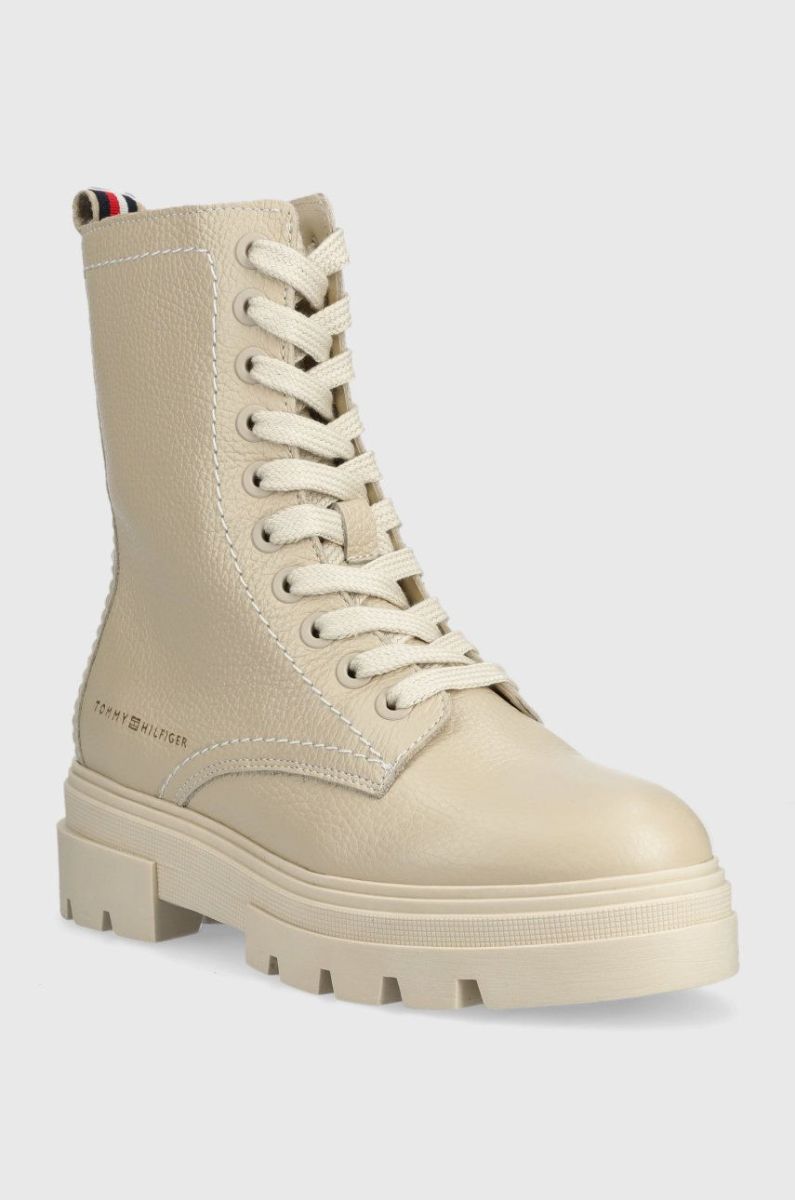 Шкіряні черевики Tommy Hilfiger Monochromatic Lace Up Boot жіночі колір бежевий на плоскому ходу